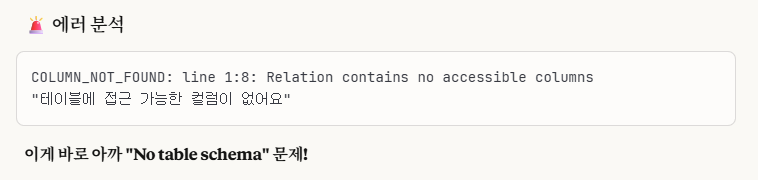 하지만 table 메뉴를 직접 클릭하여 해당 테이블을 확인해봤더니 Schema가 없었습니다.