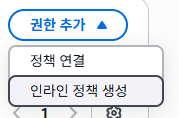 여기서 '인라인 정책 생성' 버튼을 누릅니다.