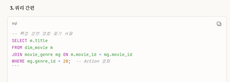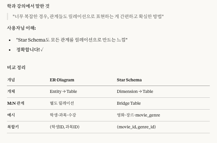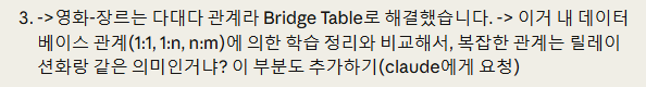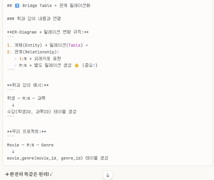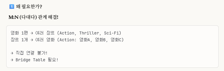 위 설계도의 'Movie_Genre' 테이블을 보면, 이 테이블이 'Bridge Table'입니다.