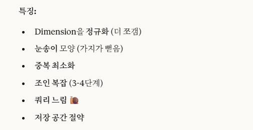 더 복잡한 구조이므로 쿼리 또한 상대적으로 느립니다.