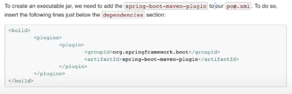 ->Maven Plugin은 build를 해주는 역할임. 즉, 실행 가능한 jar 파일을 만들어 주는 것이다.