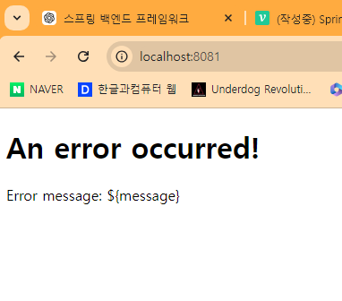 ->${message} 그대로 나오는 이유는, 해당 에러 설정이 없어서 그럼.(문제 x)