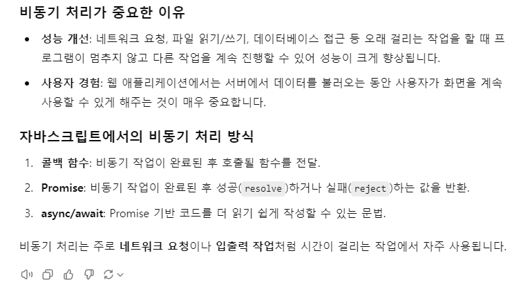 ->즉, 동기 처리는 '순차적 진행'을, 비동기 처리는 '여러 작업 동시 진행'을 의미한다.