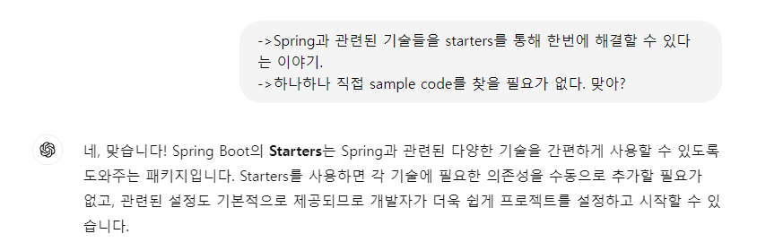 ->Spring과 관련된 기술들을 starters를 통해 한번에 해결할 수 있다는 이야기.