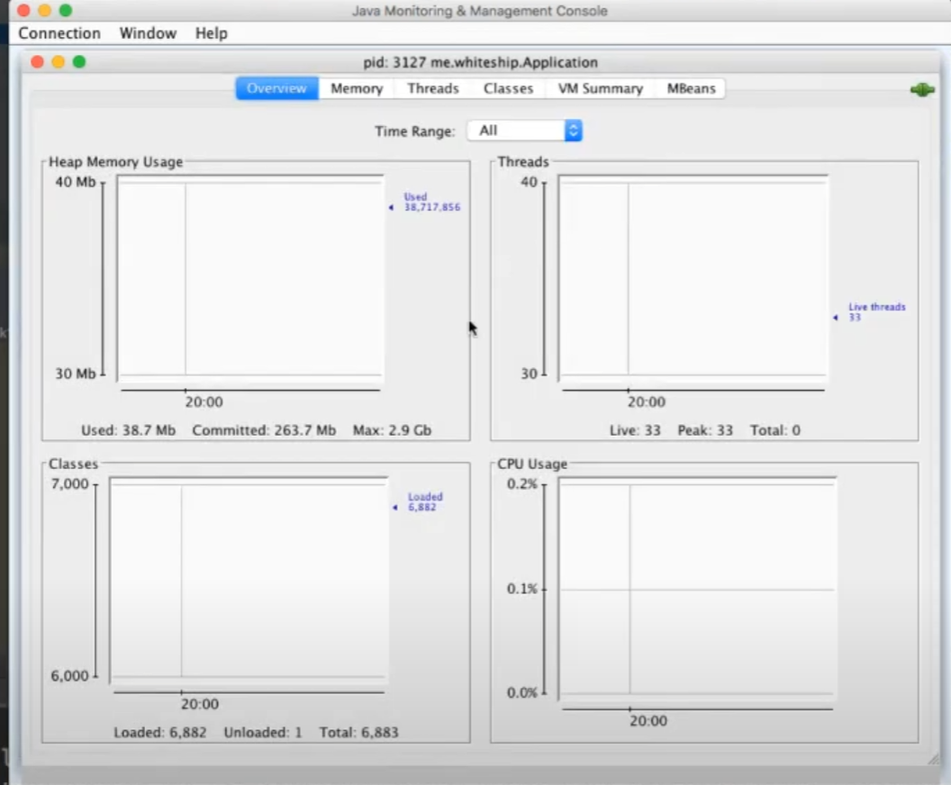 ->즉, application properties에 spring.application.admin.enabled=true로 설정하고, jconsole을 키면