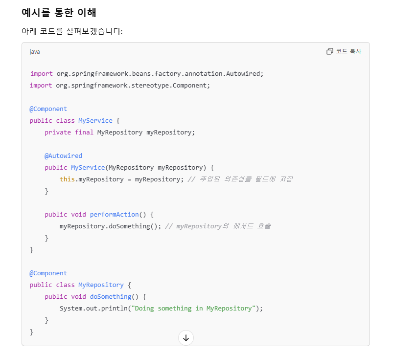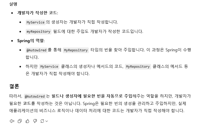 ->한 마디로, autowired는 자동으로 해당 타입의 빈을 찾아 의존성을 주입해주는 것이다.