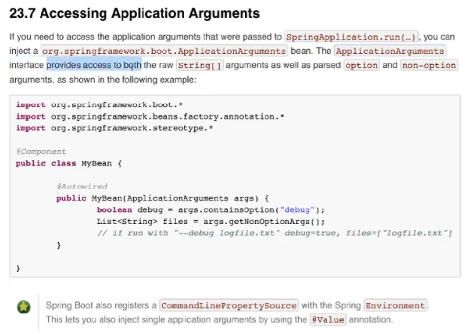 ->bean -> org.springframework.boot.ApplicationArguments임.