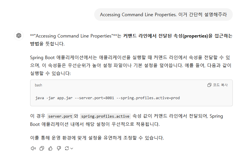 ->3. Spring의 Environment 추상화와 @ConfigurationProperties를 통해 구조화된 설정 객체로 값을 관리하고, @Value를 사용해 개별 빈에 직접 값을 주입할 수 있음. -> gpt의 답변(곰곰이 생각해보기)