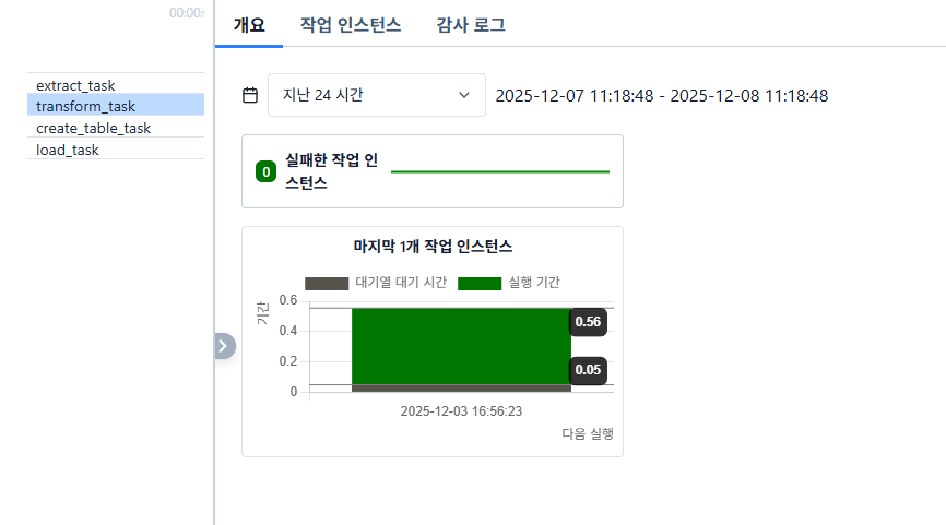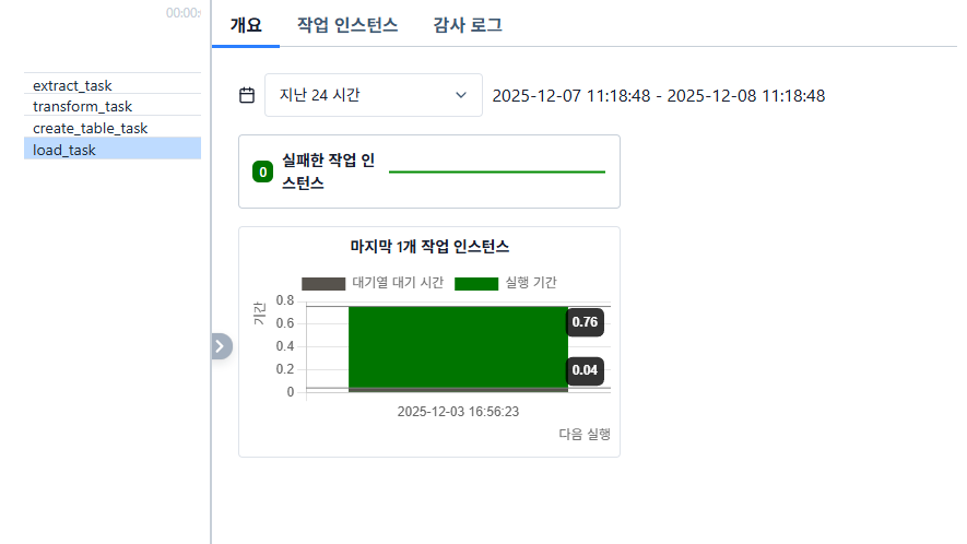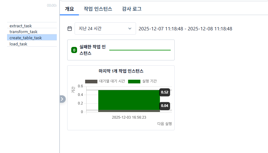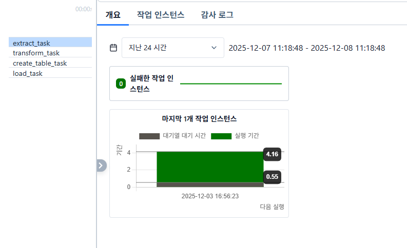이렇게 처리 시간 측정은 Airflow가 자동으로 해주고 있고, 이는 웹 UI에서 확인할 수 있습니다.