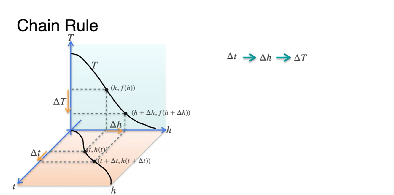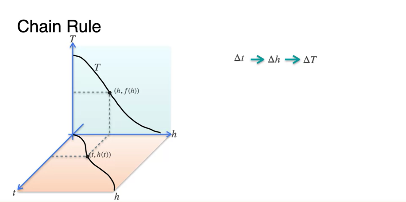 그렇다면 자동차에 타고 있는 사람이 느끼는 시간(t)에 따른 산의 온도 변화(T)율은 어떻게 표현할까?