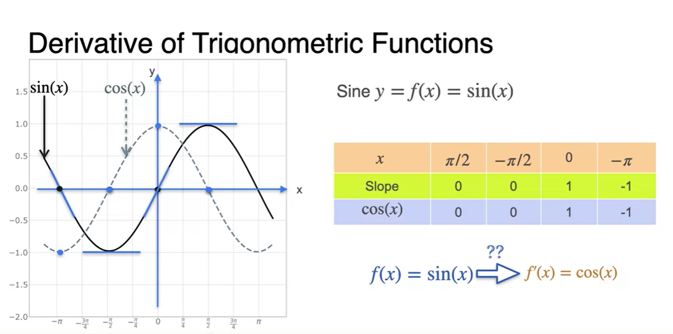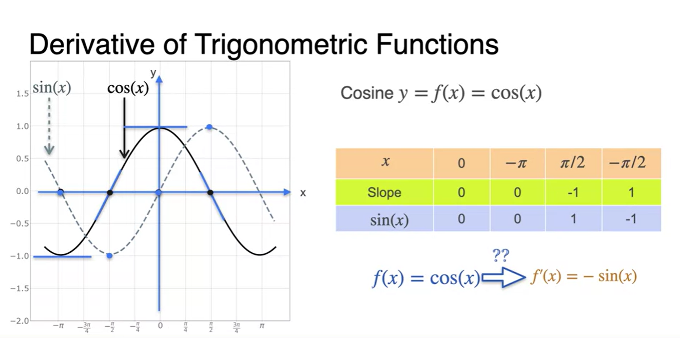 함수의 derivative는 로, 함수의 derivative는 로 정리된다.