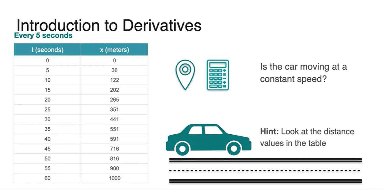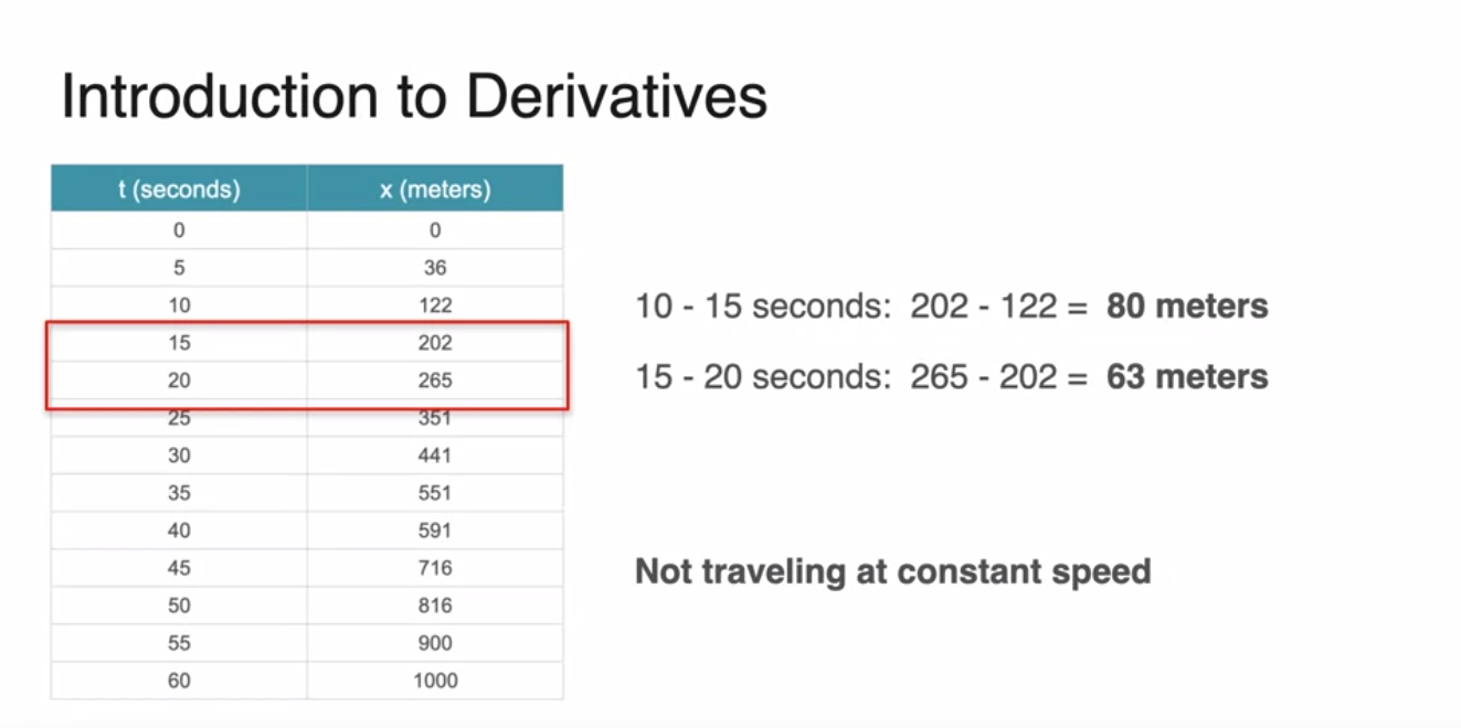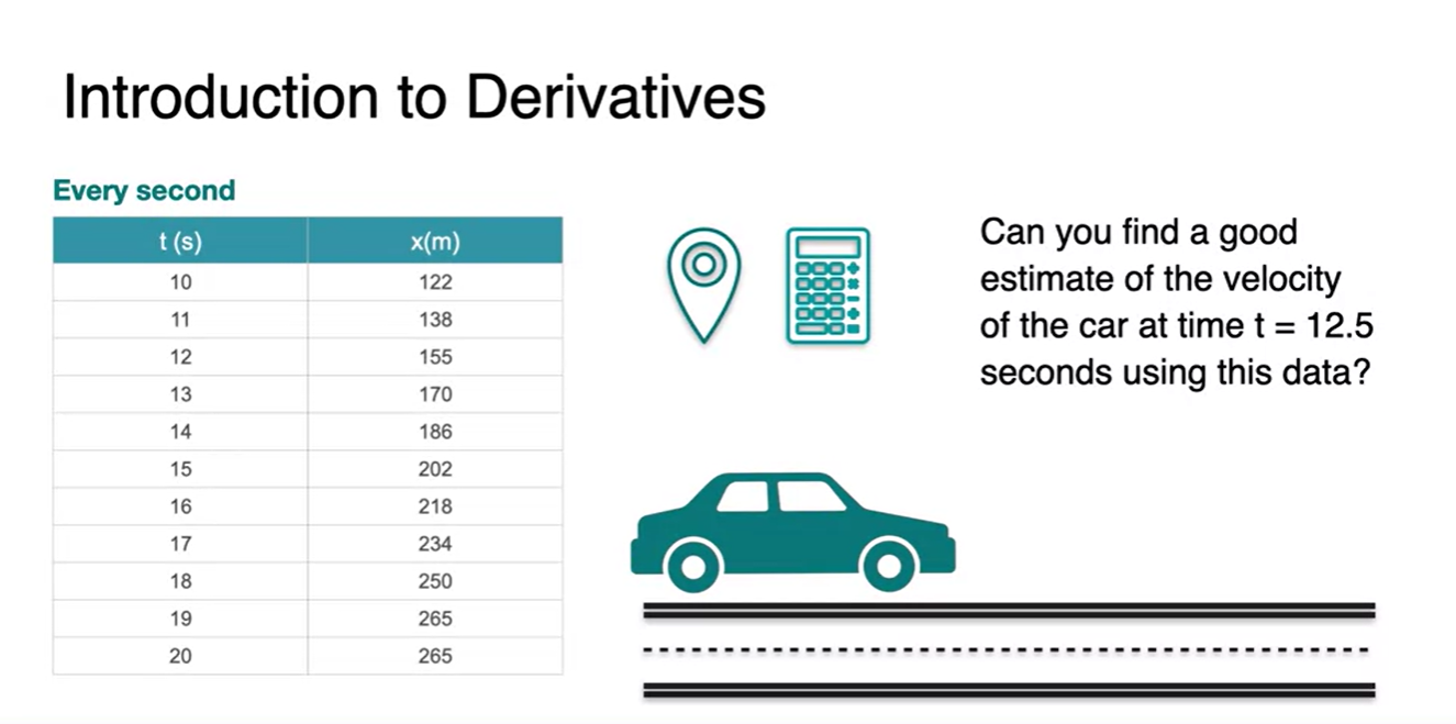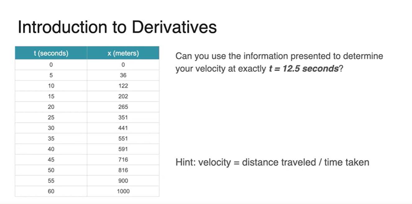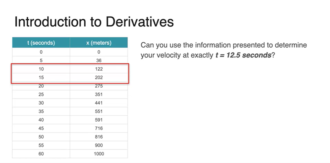만약, 시간의 범위가 조금 더 촘촘하여 12초와 13초에서의 움직임 거리를 알 수 있다면 어떨까?