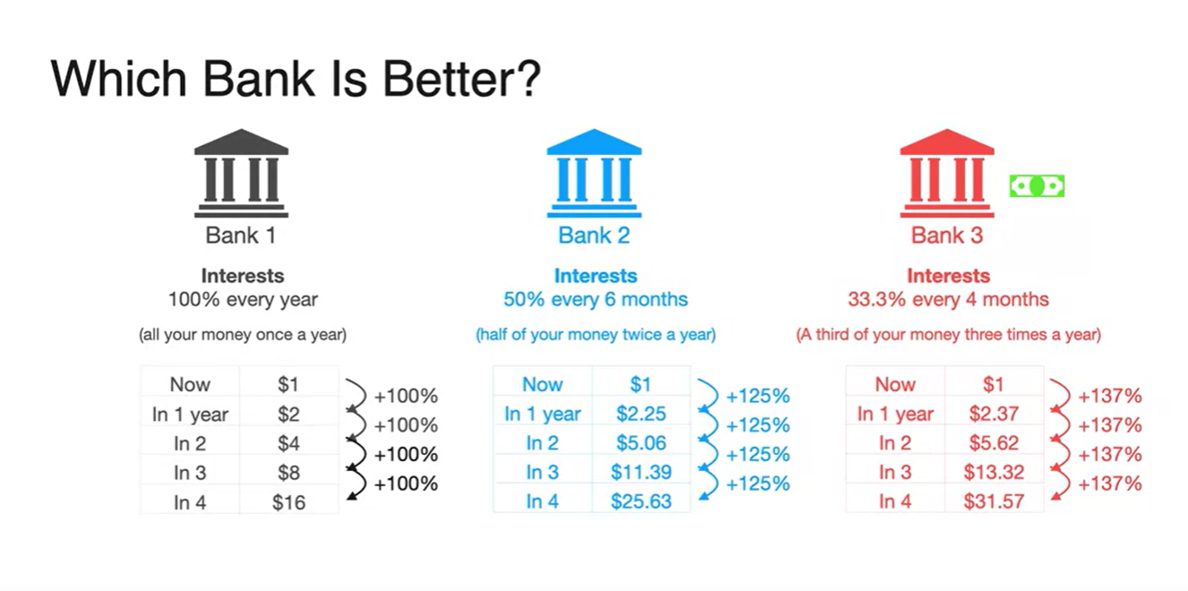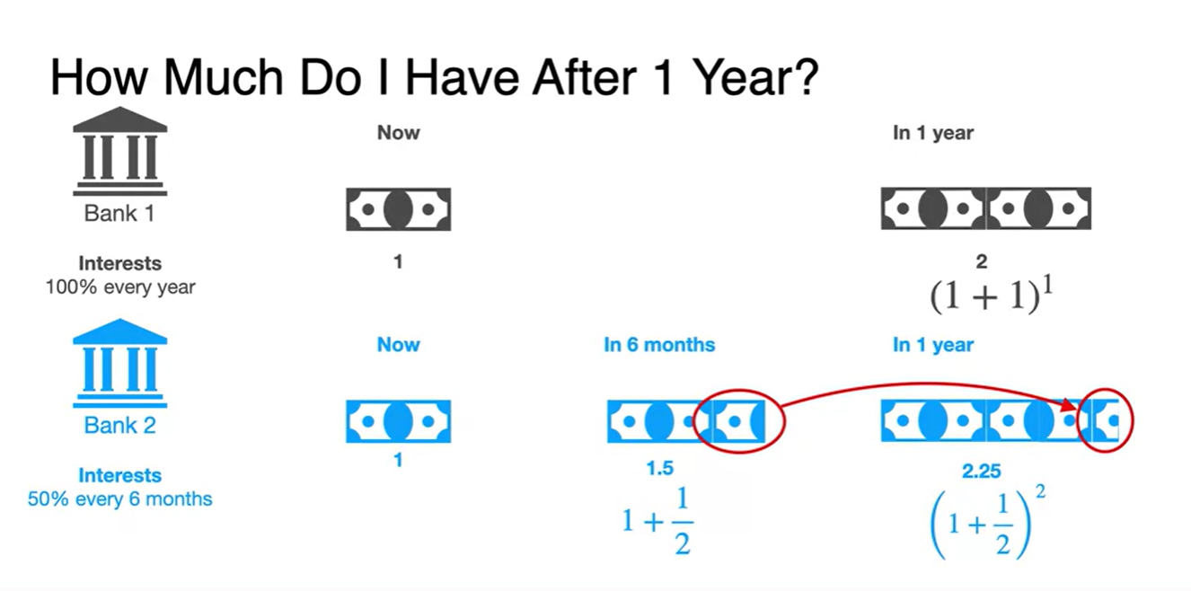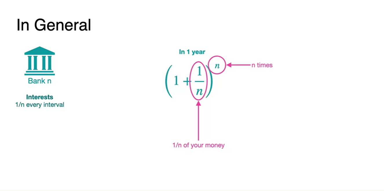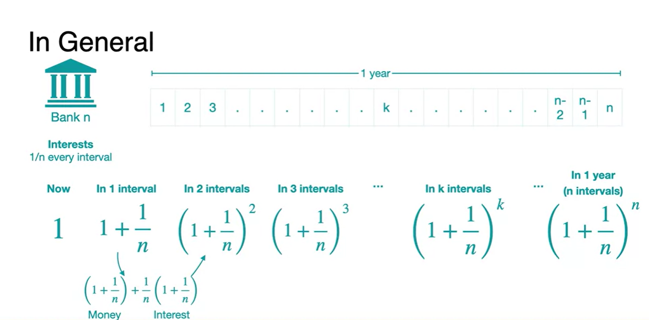 무수히 많은 은행에다가 원금 $1을 예치했다고 해보자.
