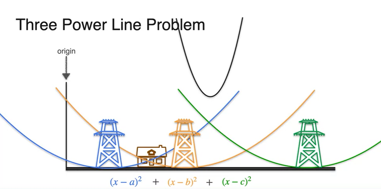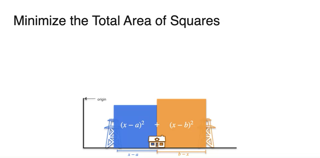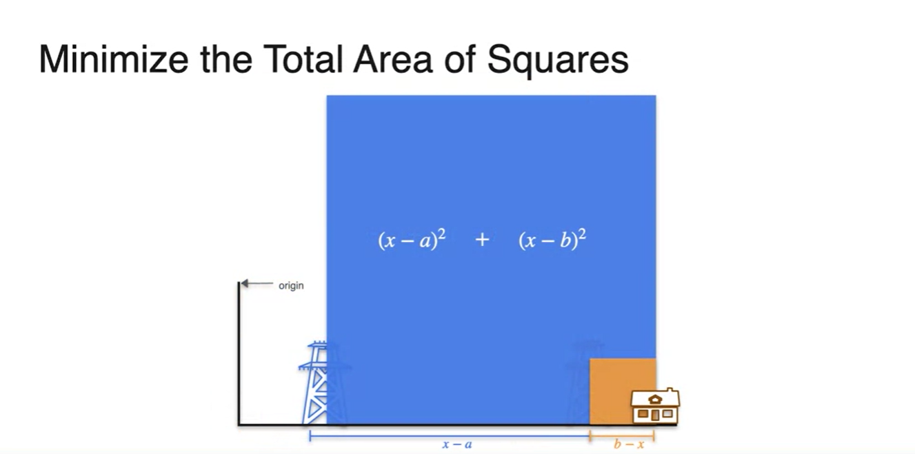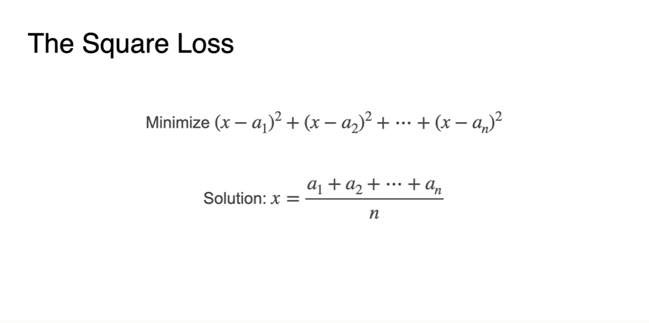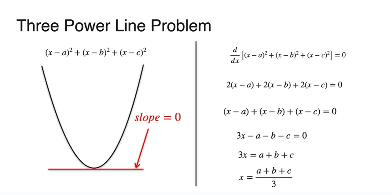 cost function은 각 distance 제곱의 합이며 solution은 distance의 합을 평균낸 것이라고 할 수 있다.