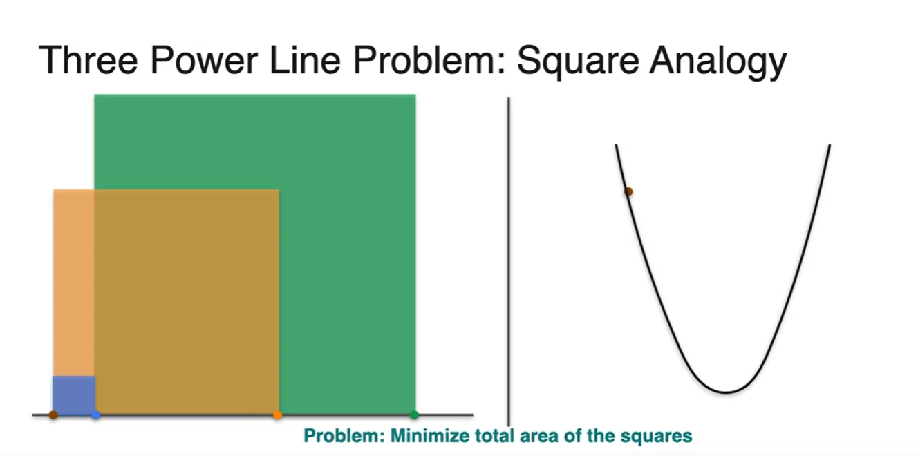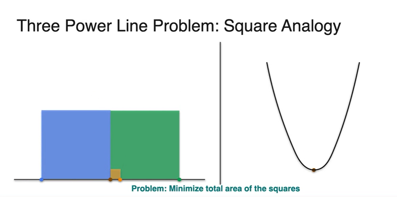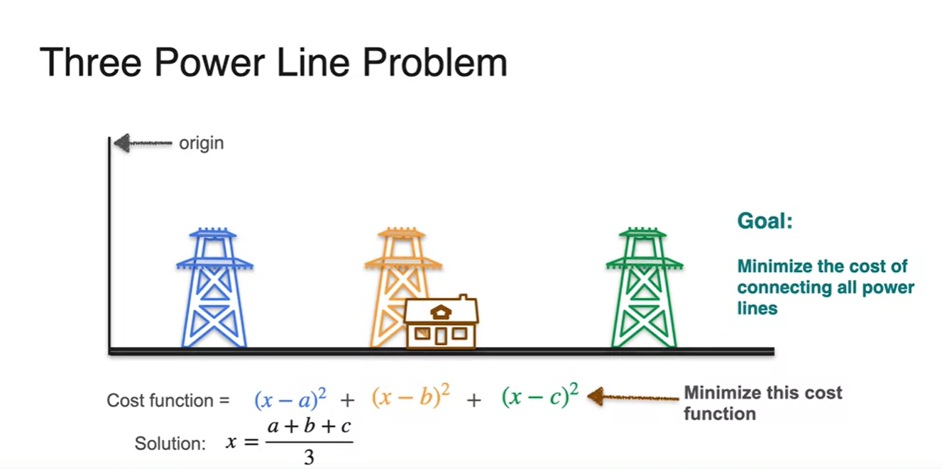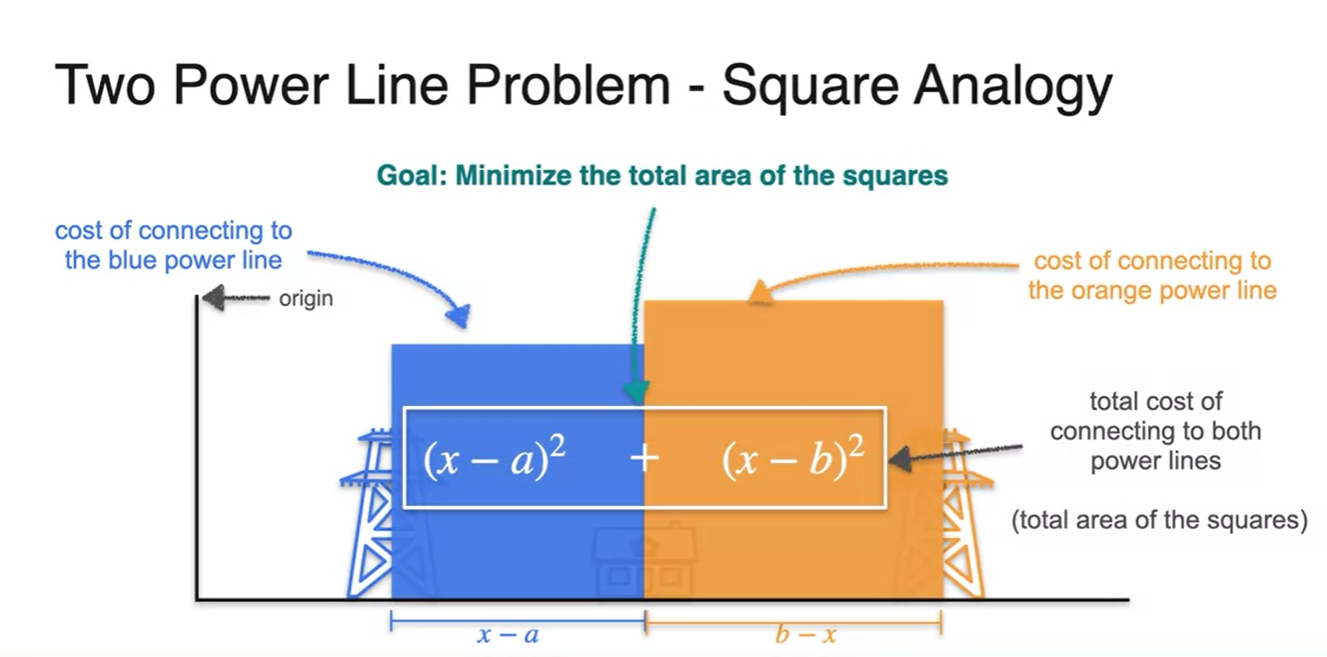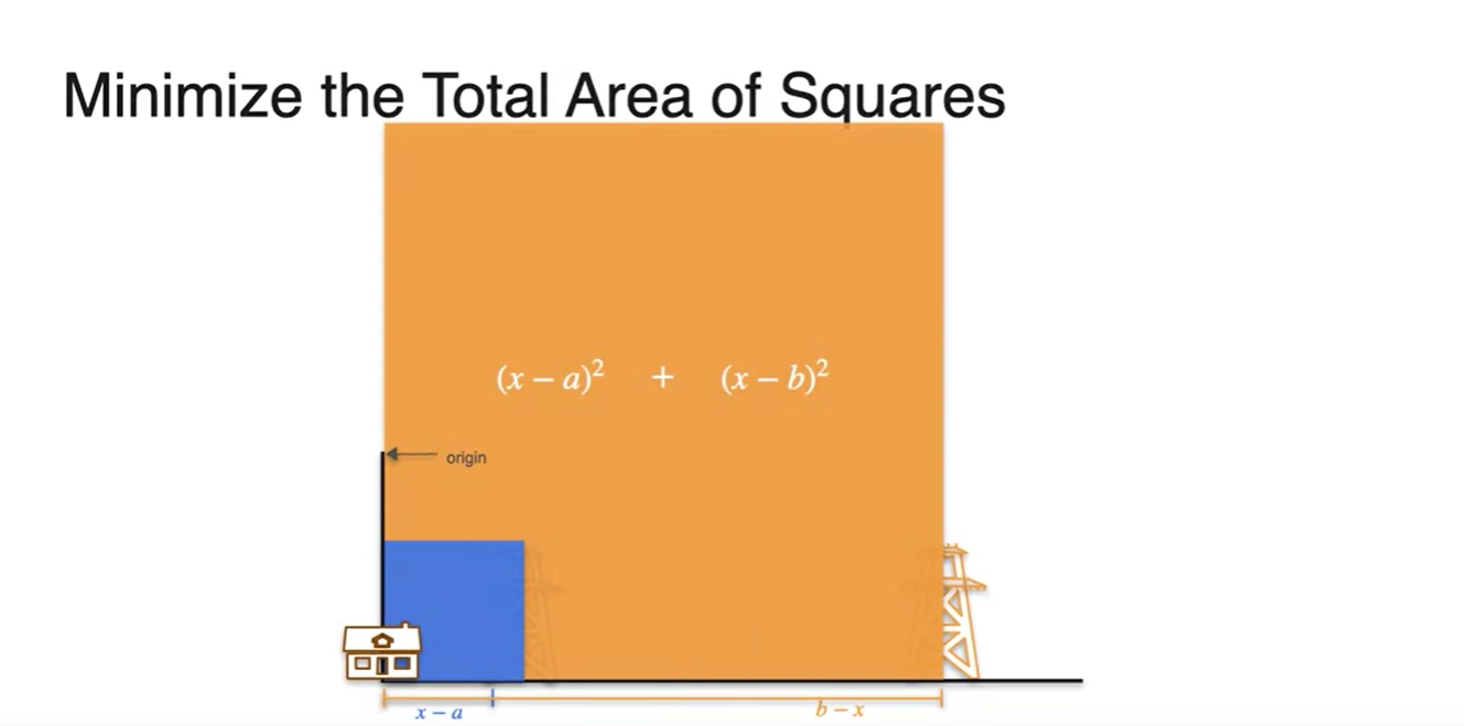 cost function은 각 distance 제곱의 합이며 solution은 distance의 합을 평균낸 것이라고 할 수 있다.
