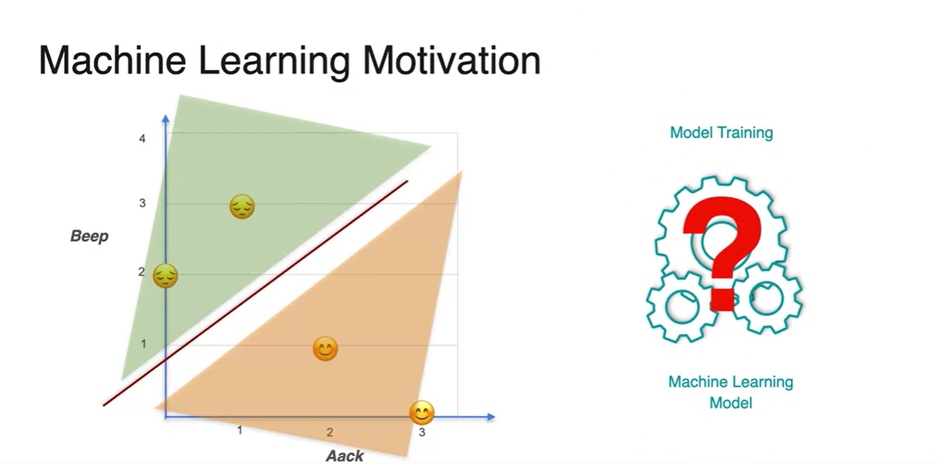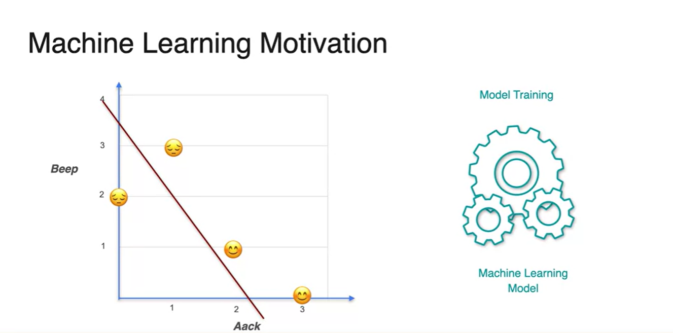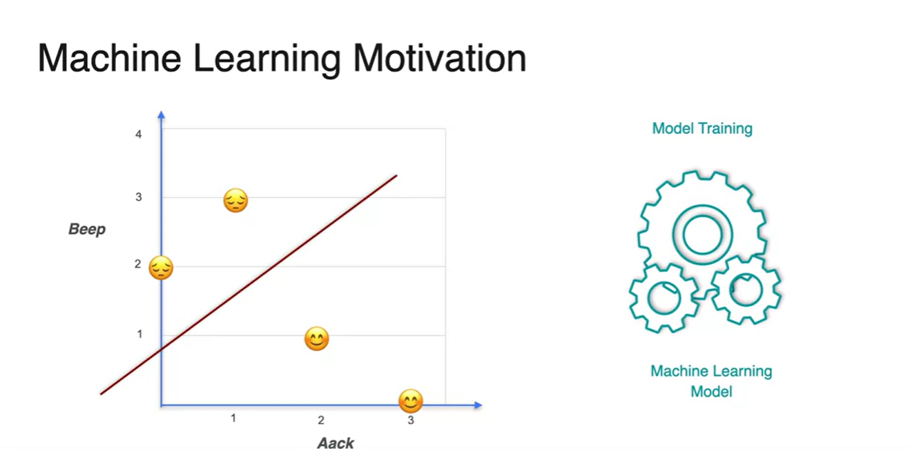 이 때, 모든 데이터 분포를 일반화하여 잘 설명할 수 있는 하나의 직선을 찾는 것이 machine learning의 동작 원리다.