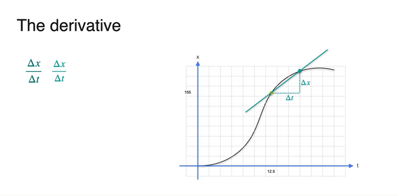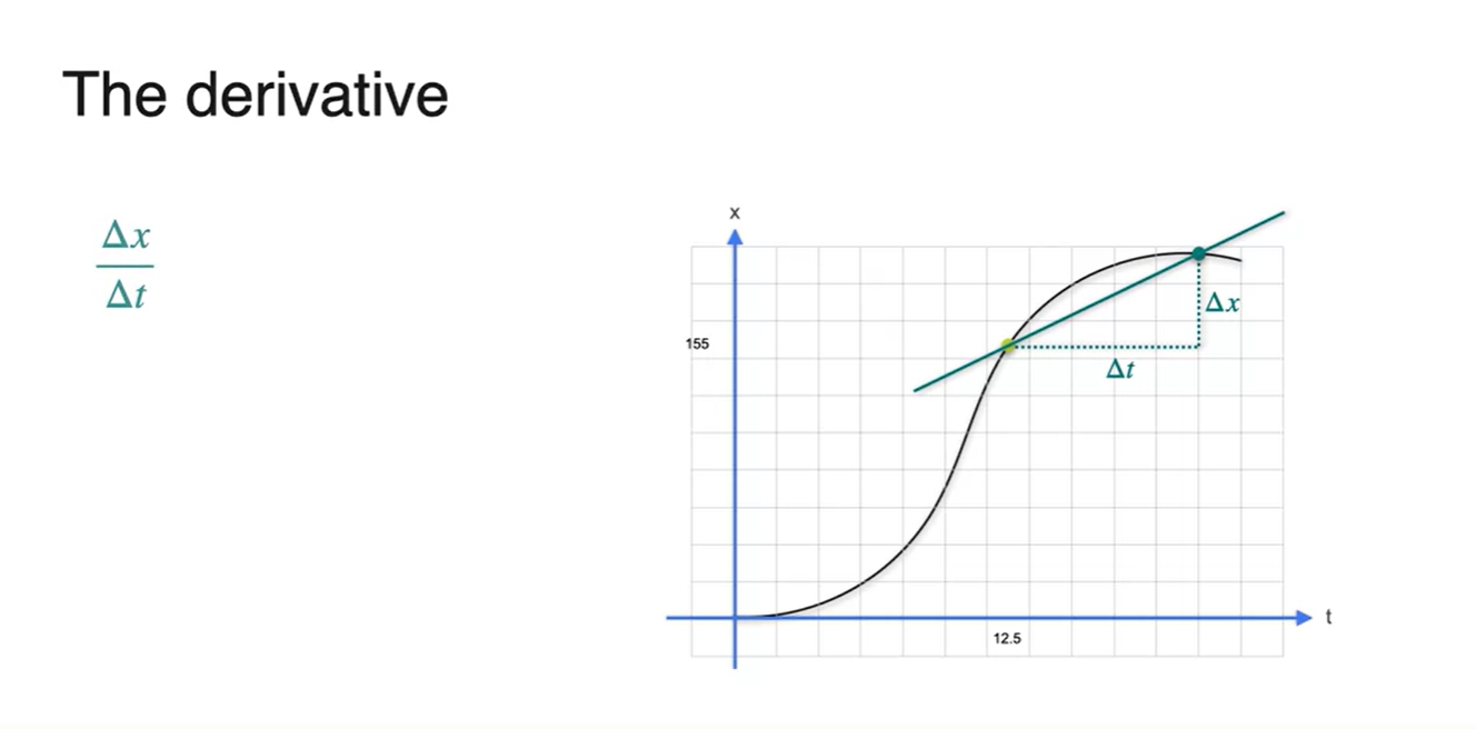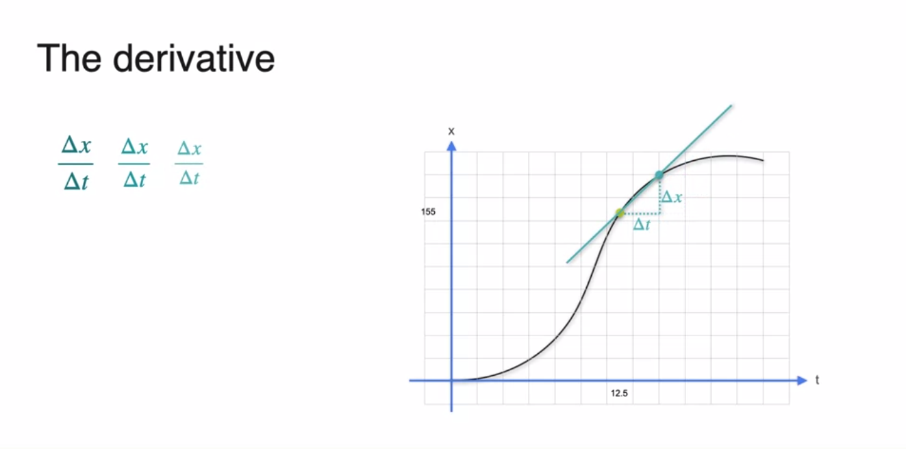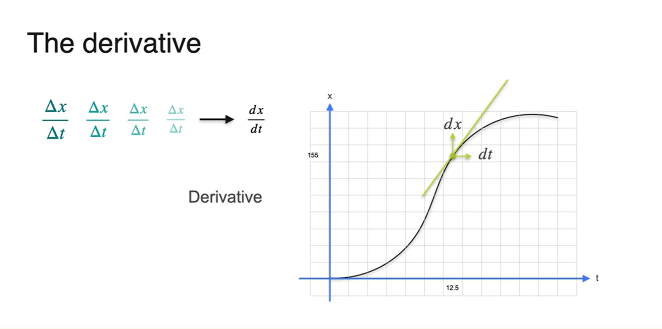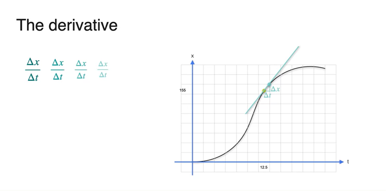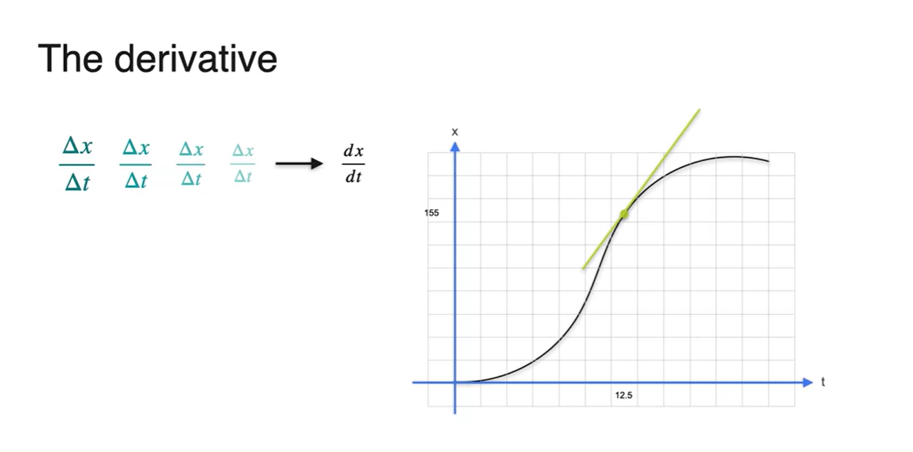 이를 시간에 따른 변화()로 나누어 아주 작은 범위의 시간으로 보내면(), 로 표현 가능해진다.