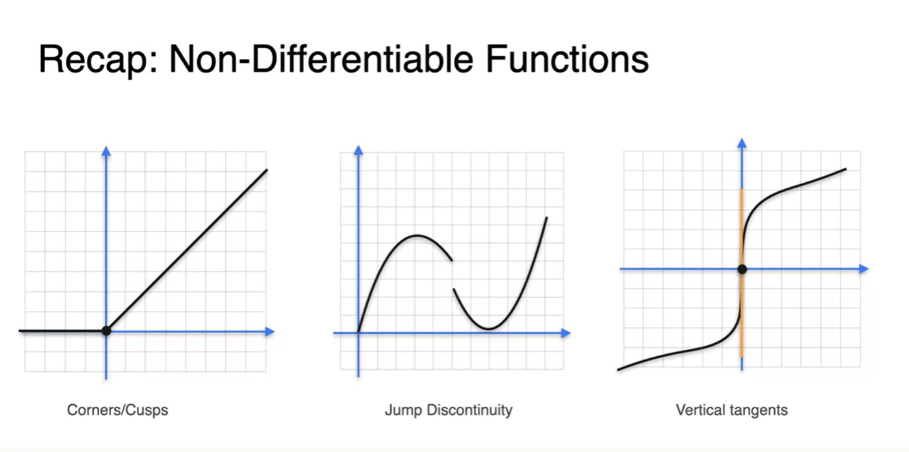 정리하자면 아래와 3가지 같은 상황에서 미분이 불가능하다.