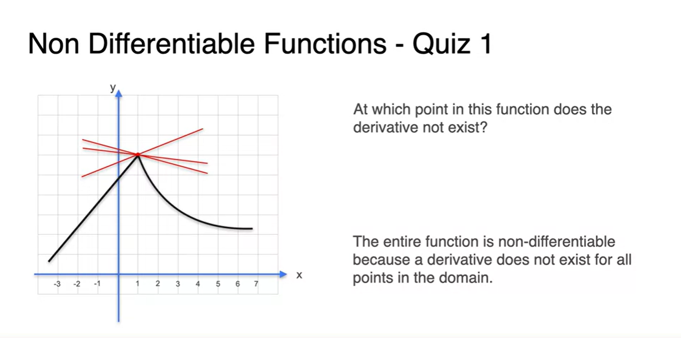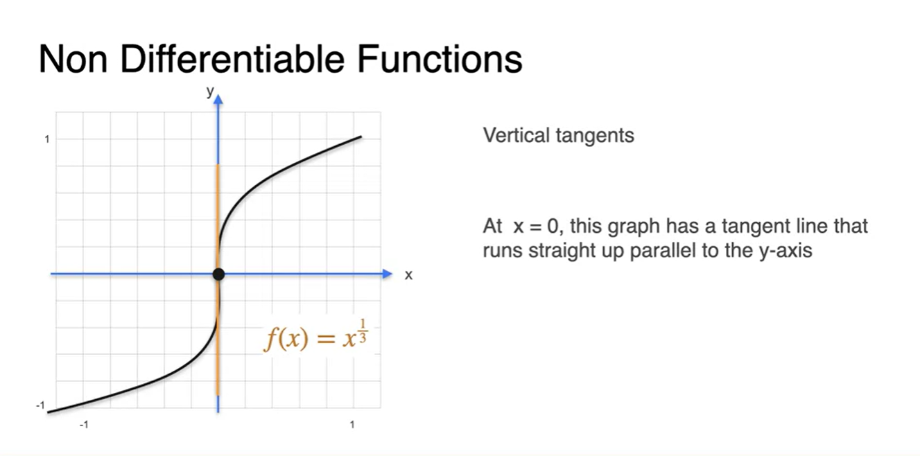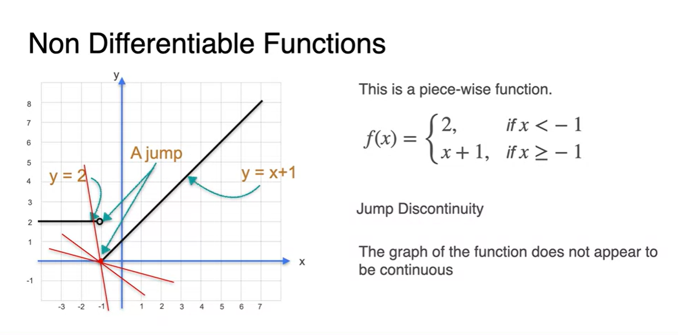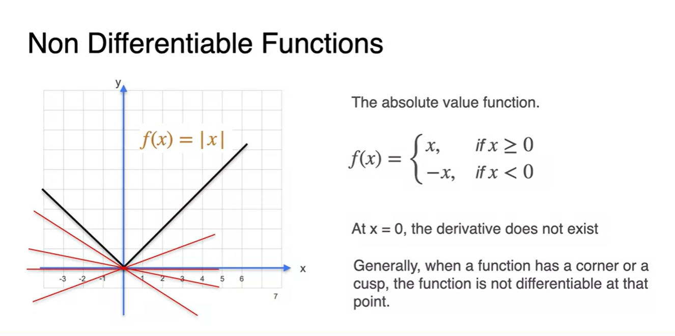 지점에서는 어떠한 방식으로 미분하여도 같은 tangent(기울기)가 나오지 않는다.