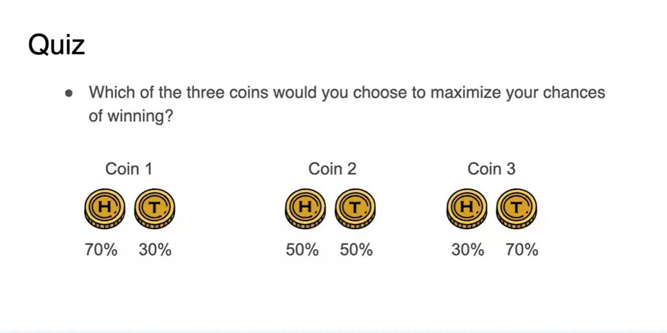 세 가지 버전의 Coin 확률 set이 있다고 하자.