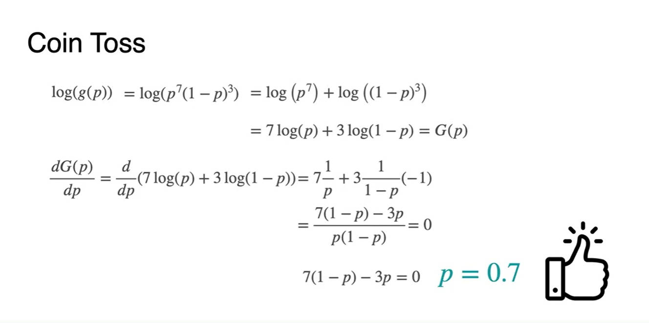 H가 나올 확률을 , T가 나올 확률을 라고 하자.