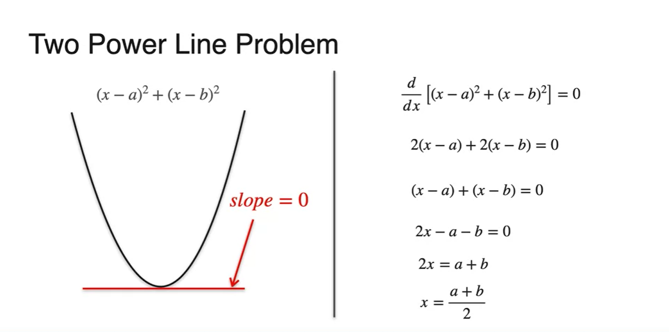우리는 함수 를 minimize하는 지점을 찾아야 하므로 slope가 0인 지점을 찾아야 한다.