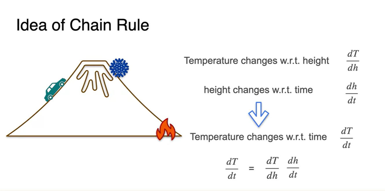산의 온도 차이는 높이(h)에 따라 변하는 함수고, 산을 오르는 자동차의 움직임 변화는 시간(t)에 따라 달라지는 함수다.