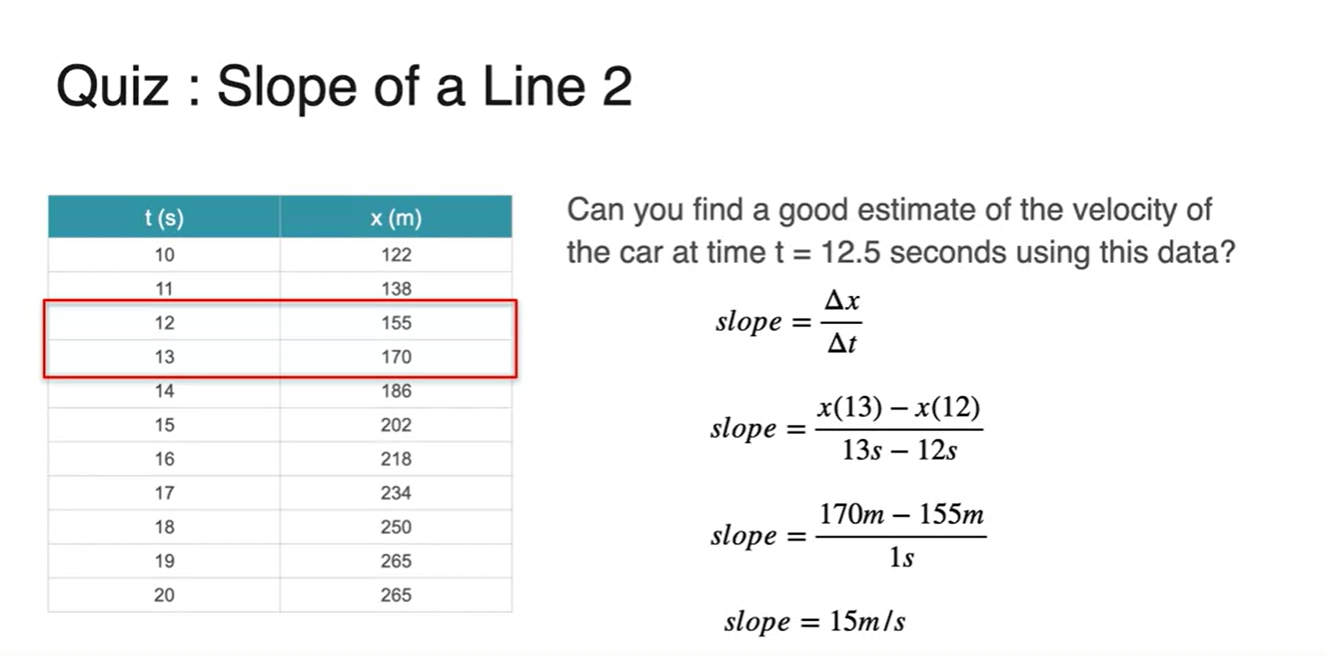 아래와 같은 방식으로 12.5초의 순간 Slope를 estimation한다.