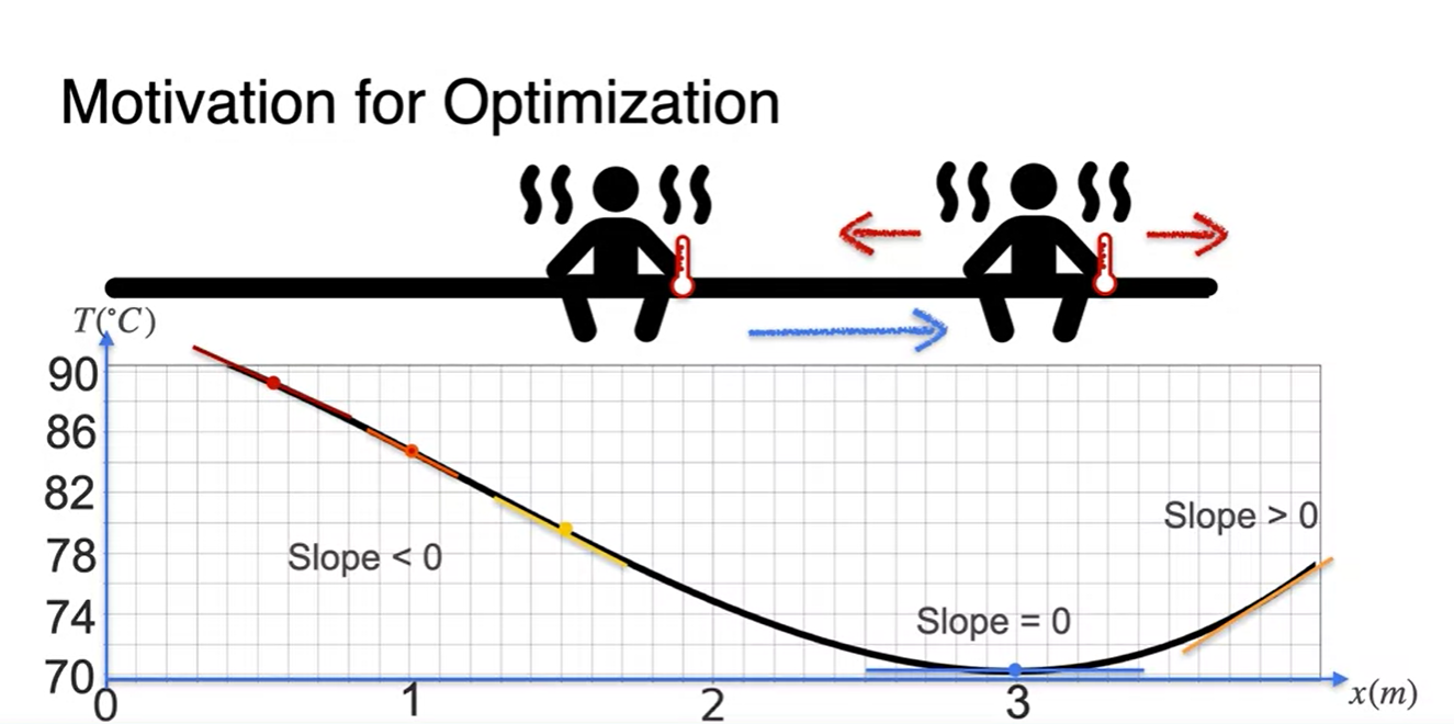 이를 기울기로 표현하면 첫 지점으로부터 차가운 지점으로 향해가는 동안의 slope는 < 0이 된다.