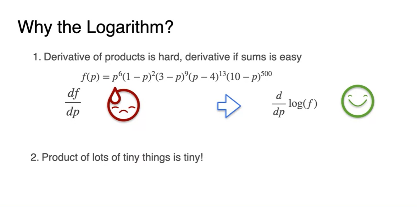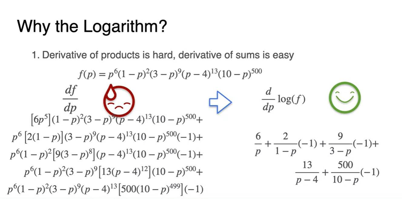 Maximize function 를 그냥 미분하지 말고, 를 씌운 뒤 미분해보자.