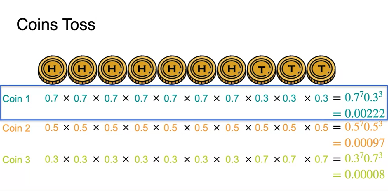 왼쪽에 놓인 coin들의 분포가 Data이고, Model은 각 data point가 발현되는 확률을 모델로 한다고 해보자.