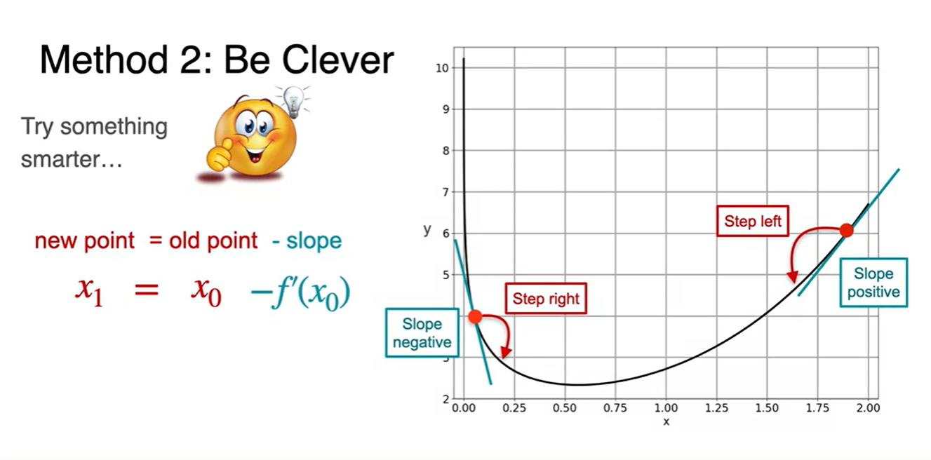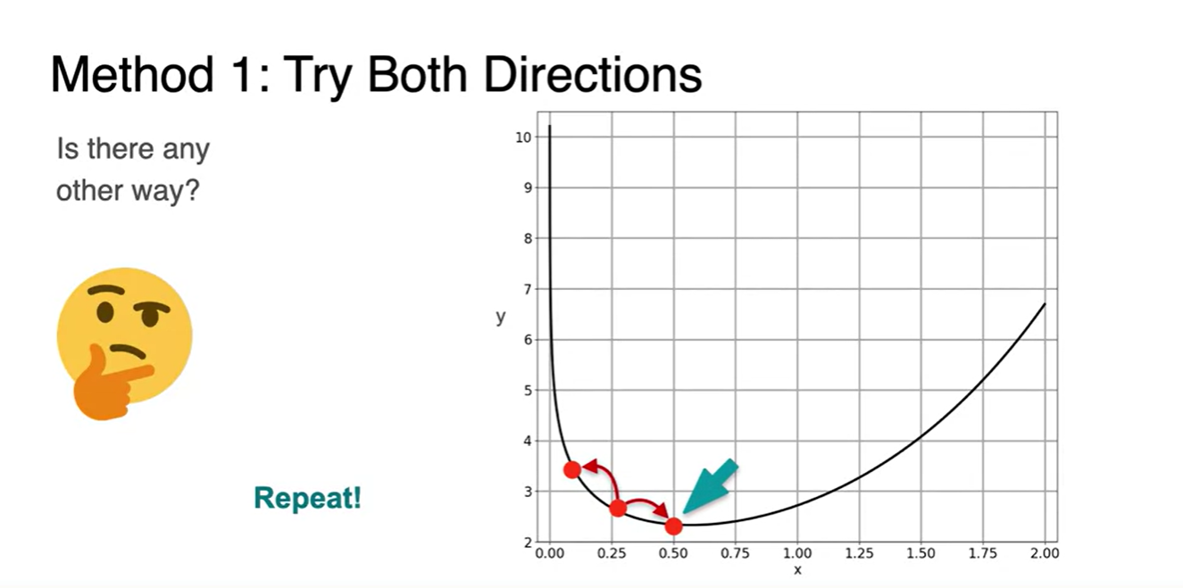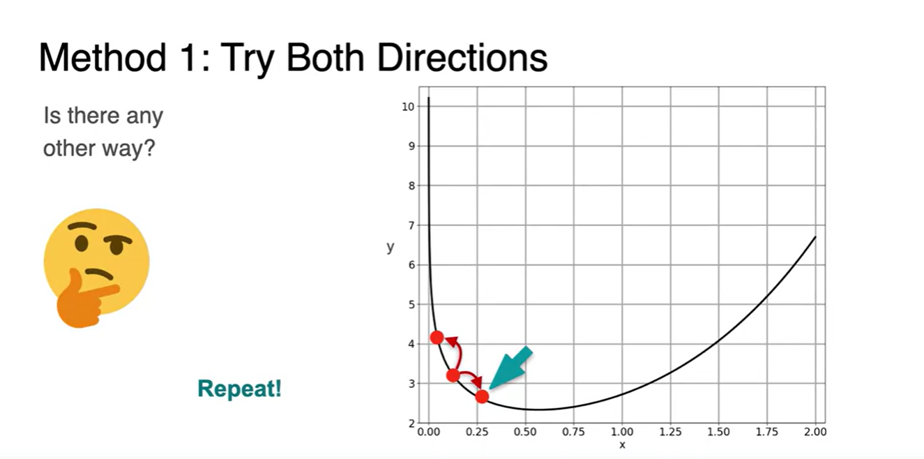 Slope의 부호에 따라 step을 어디로 가야할지 생각해보자.