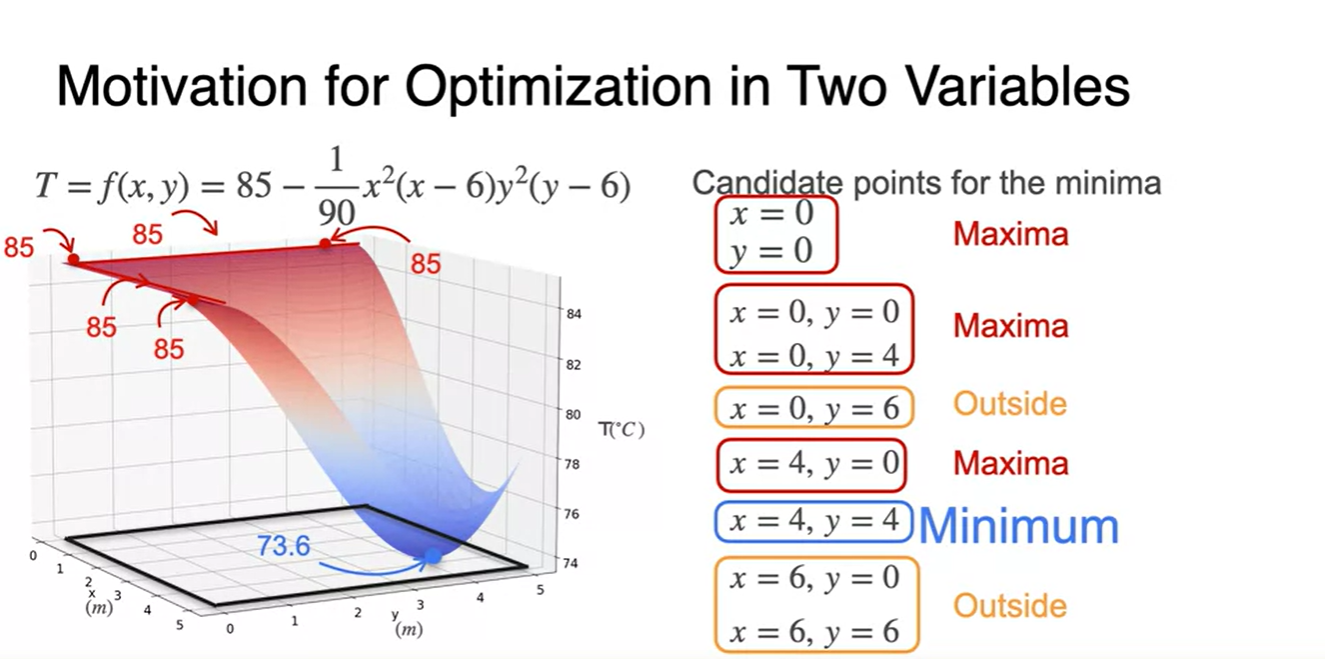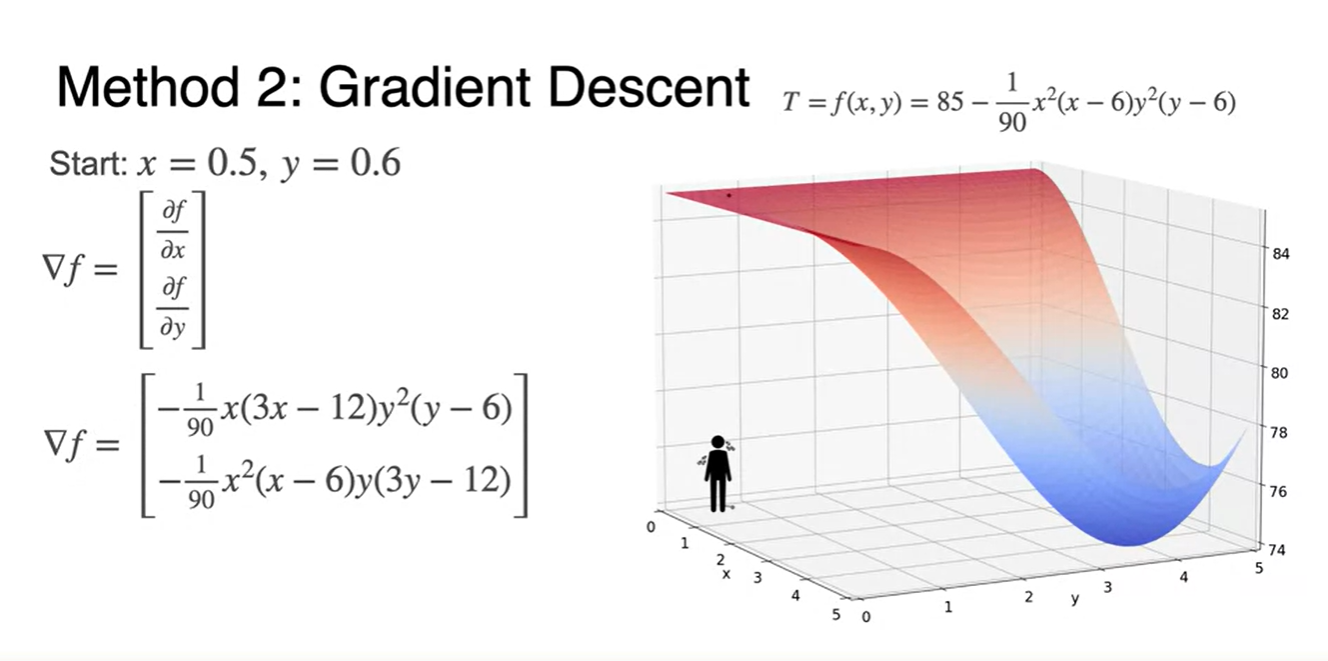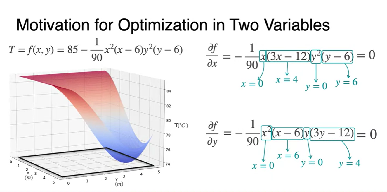 따라서 각 변수별로 편미분하여 각각의 derivative function이 0이 되는 와 를 찾아야 한다.