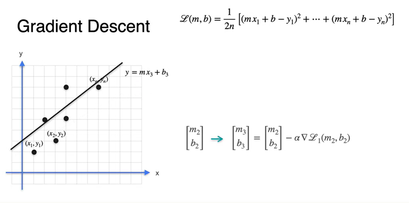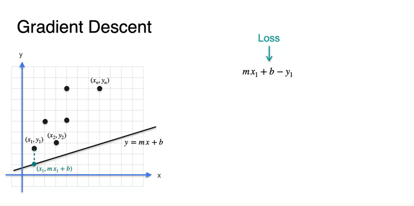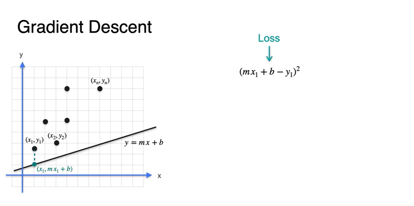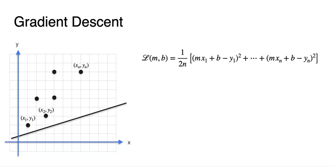 각 데이터 point들이 총 개가 있다고 하면 Loss는 각 지점에서의 오차의 평균으로 나타낼 수 있다.