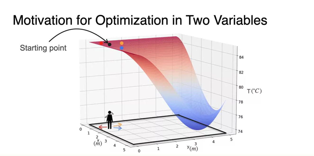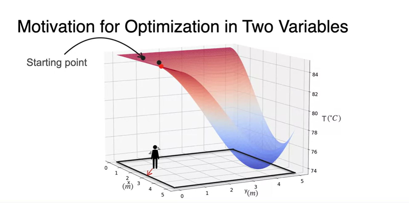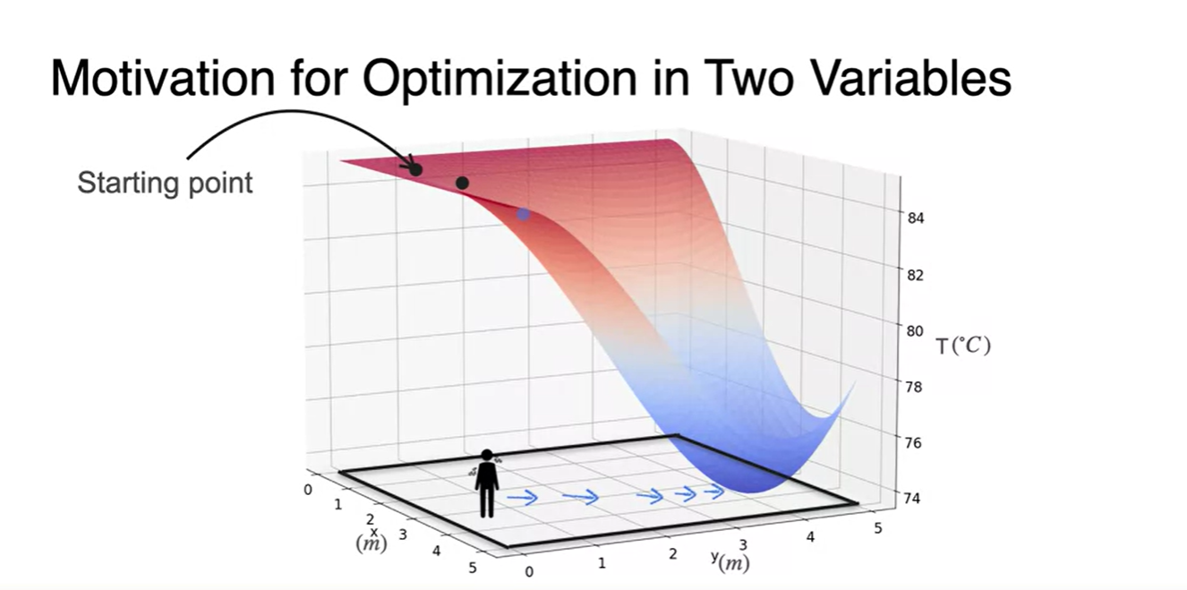 이제 2 variables를 갖는 function의 Gradient Descent를 얘기해보자.