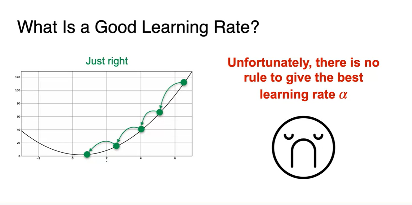 딱 알맞는 just right한 learning rate를 찾는 rule은 불행하게도 존재하지 않는다.