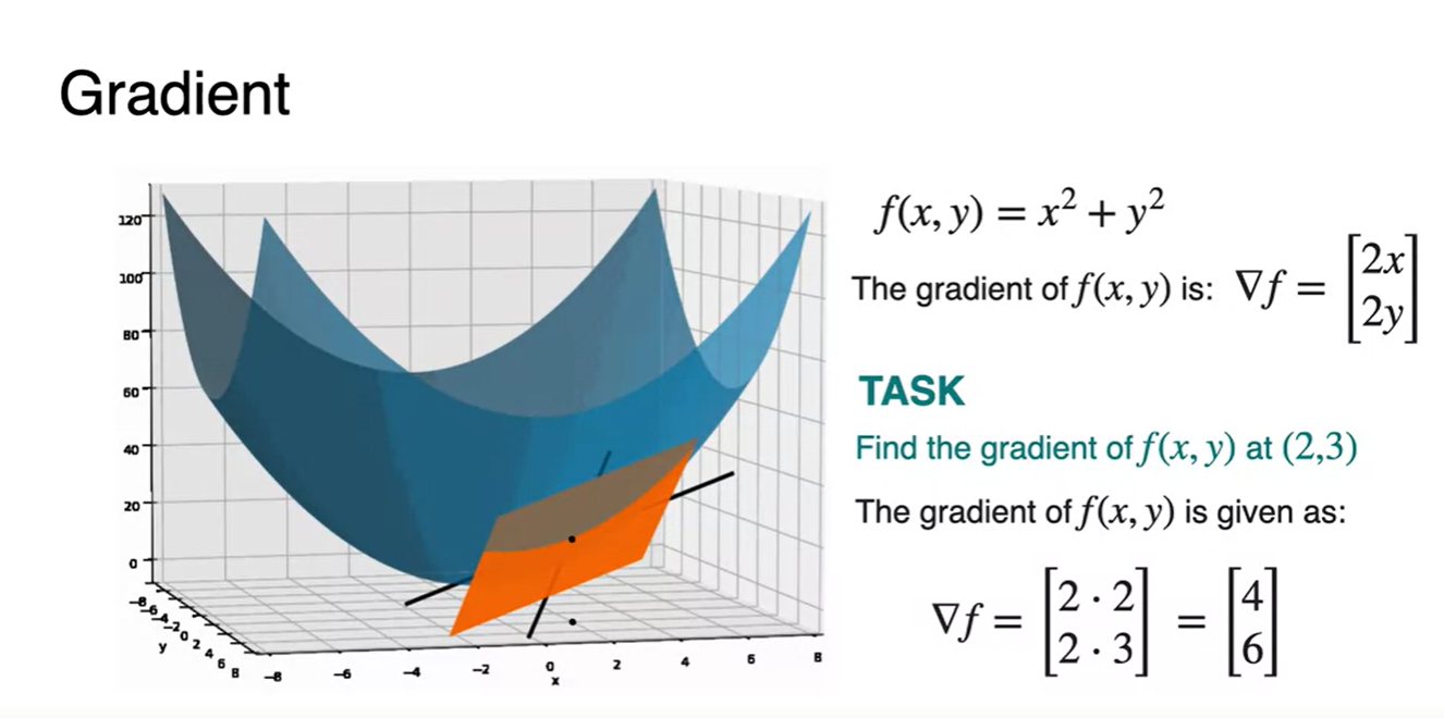(2, 3) 지점에서의 gradient를 구하는 방법은 각 변수별로 편미분 한 와 를 대입하는 것으로 해결할 수 있다.