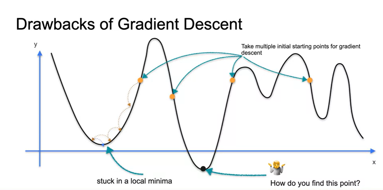 Gradient Descent의 치명적인 약점(Drawback)은 local minima에 빠질 수 있다는 점이다.