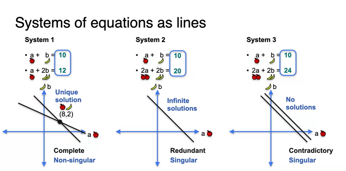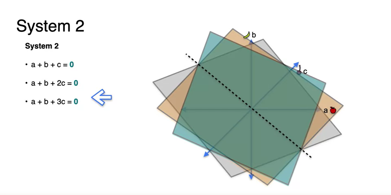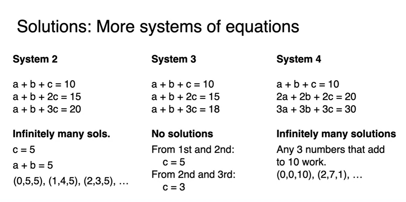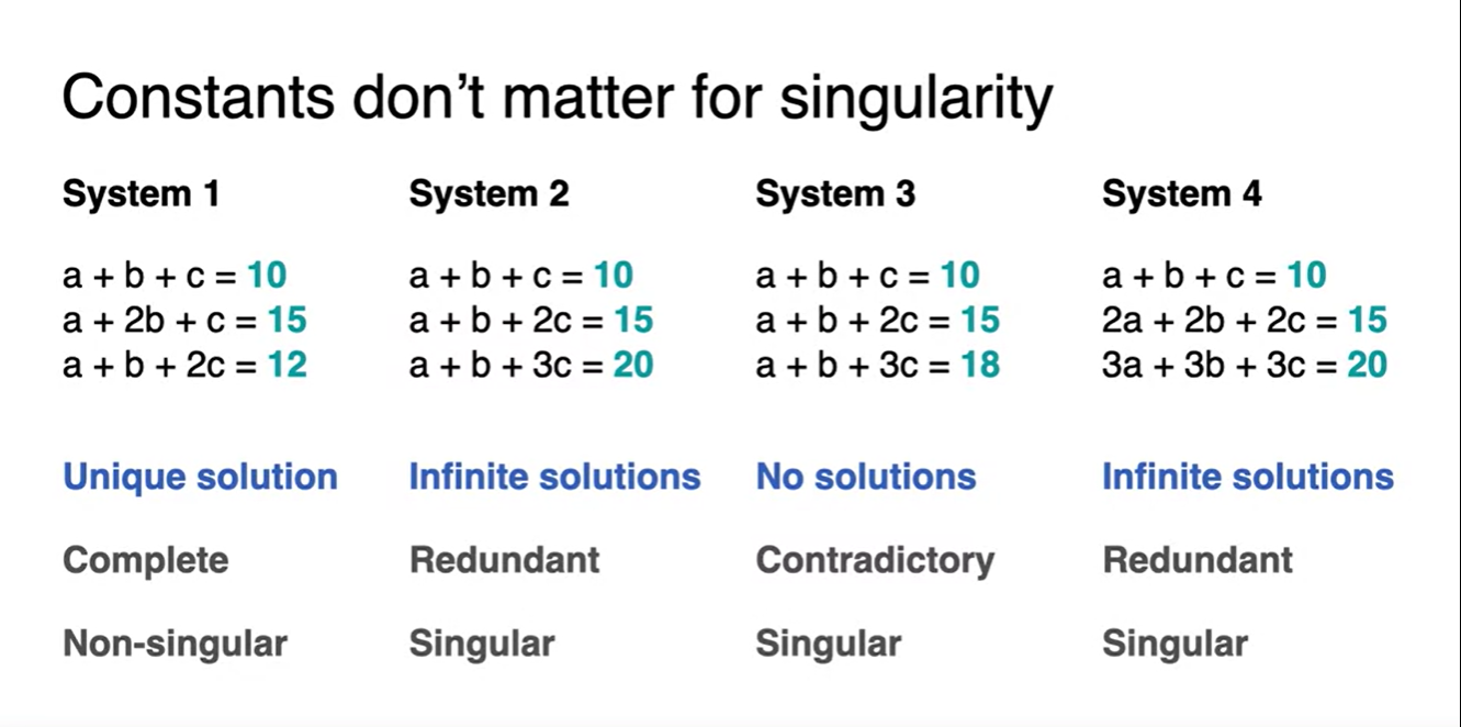 여기서 주목할만한 점은 No-solution을 갖던 System 3가 Infinite solutions를 갖는 System으로 바뀌었다는 점이다!