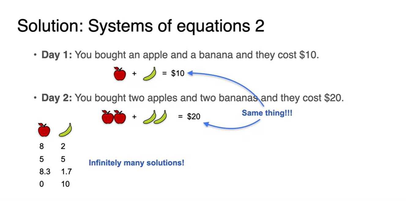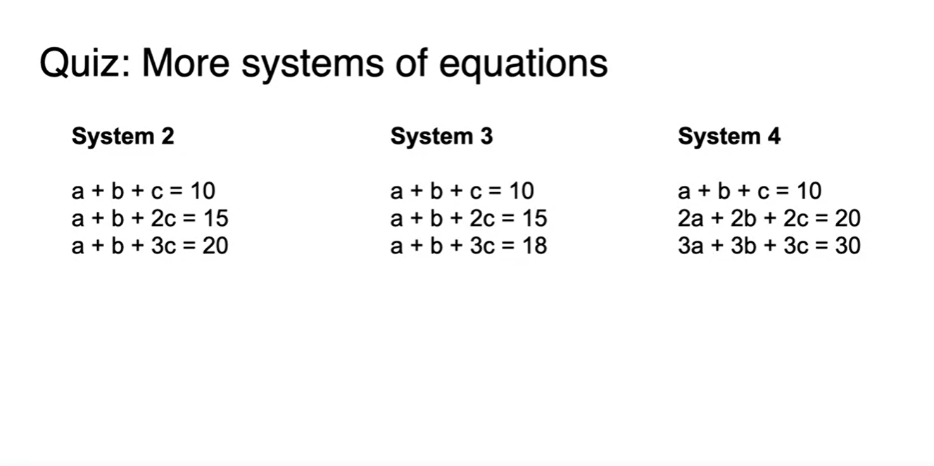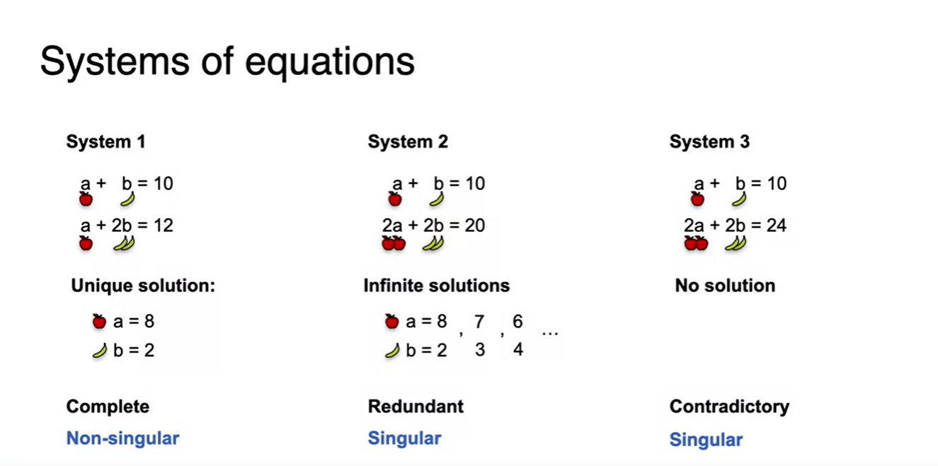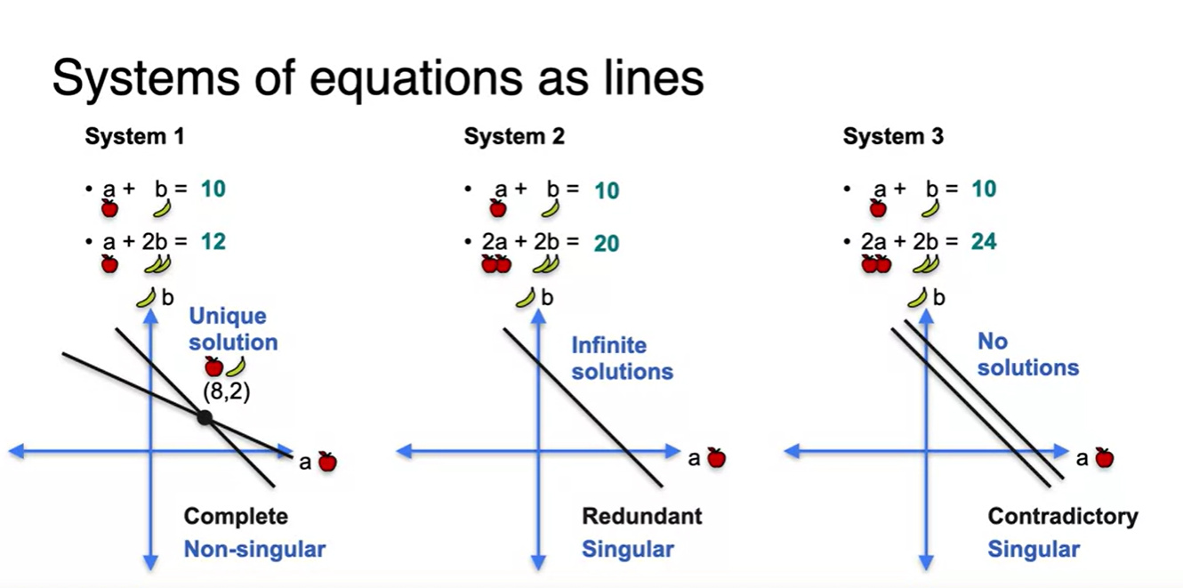 여기서 주목할만한 점은 No-solution을 갖던 System 3가 Infinite solutions를 갖는 System으로 바뀌었다는 점이다!