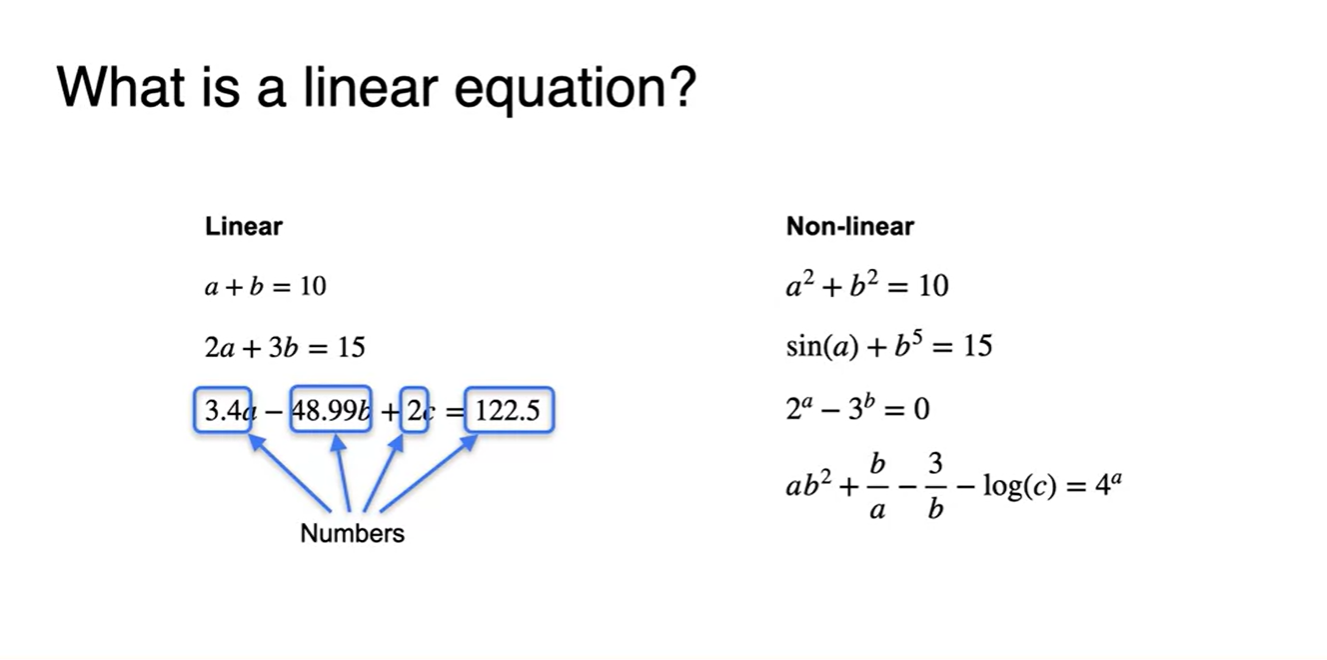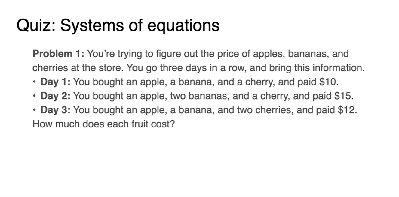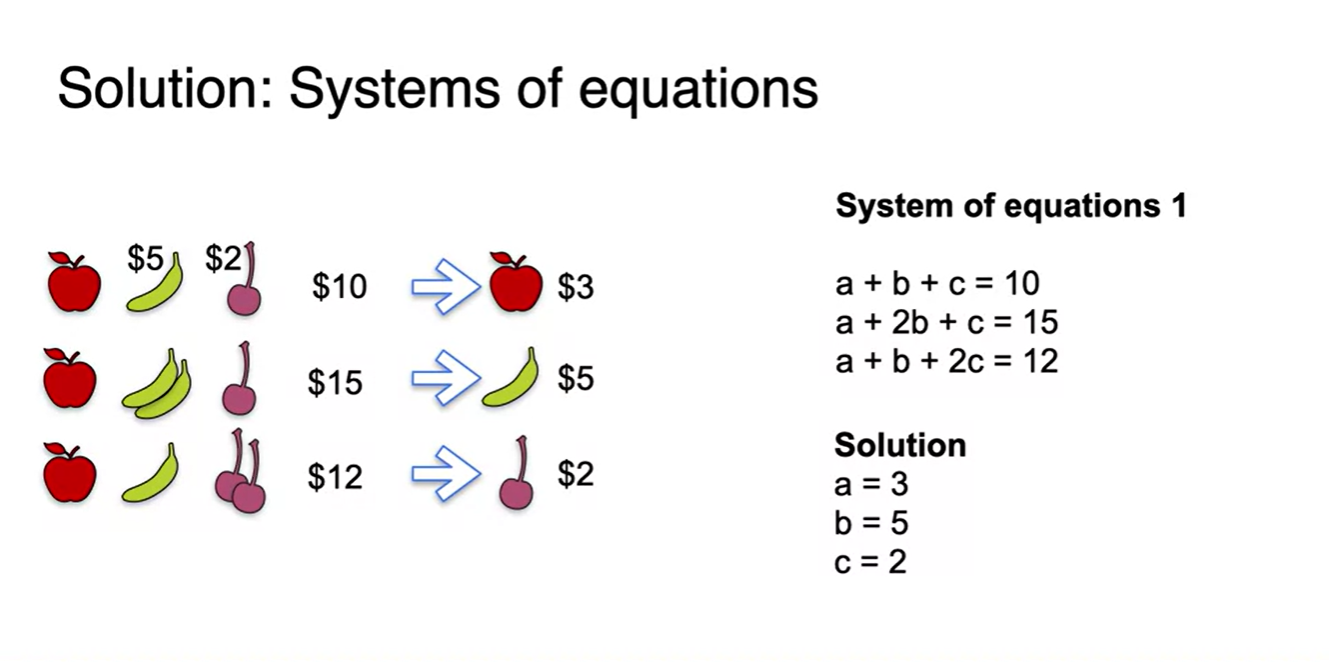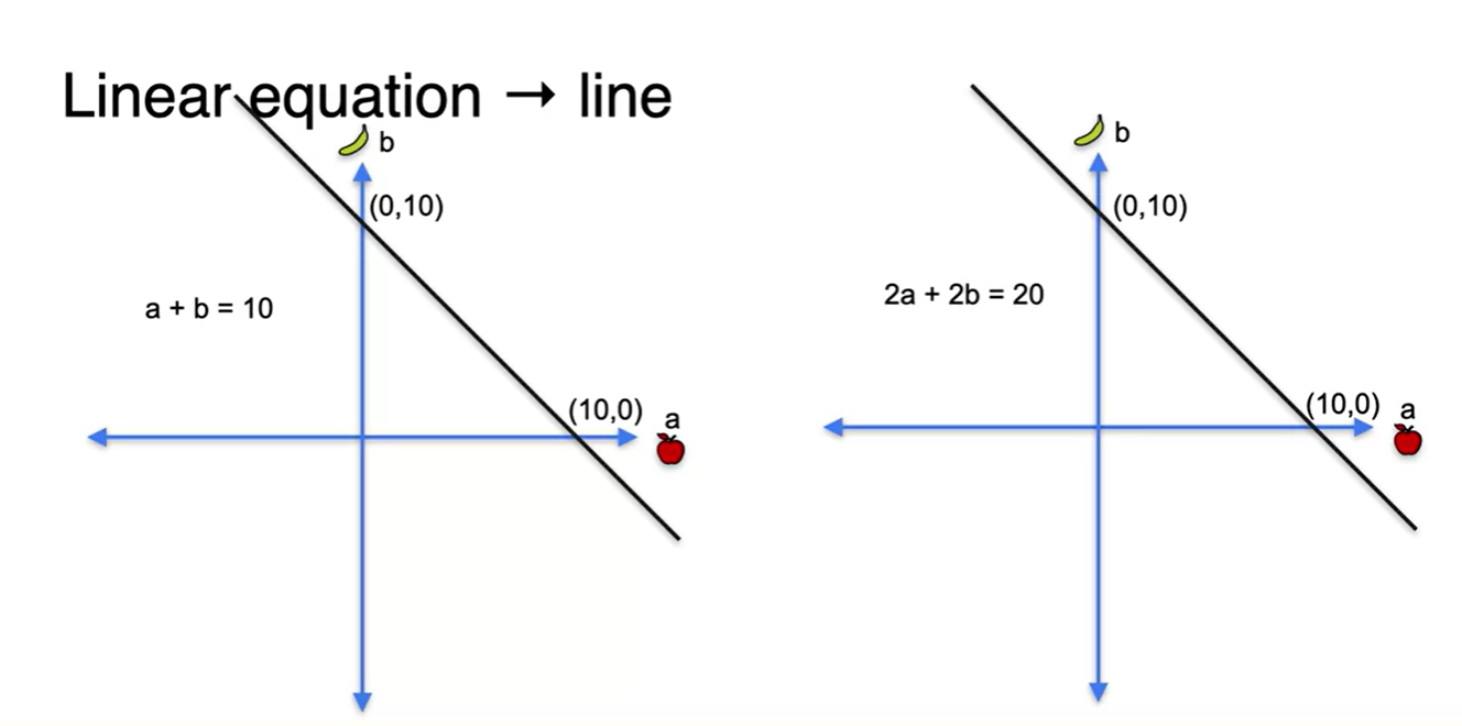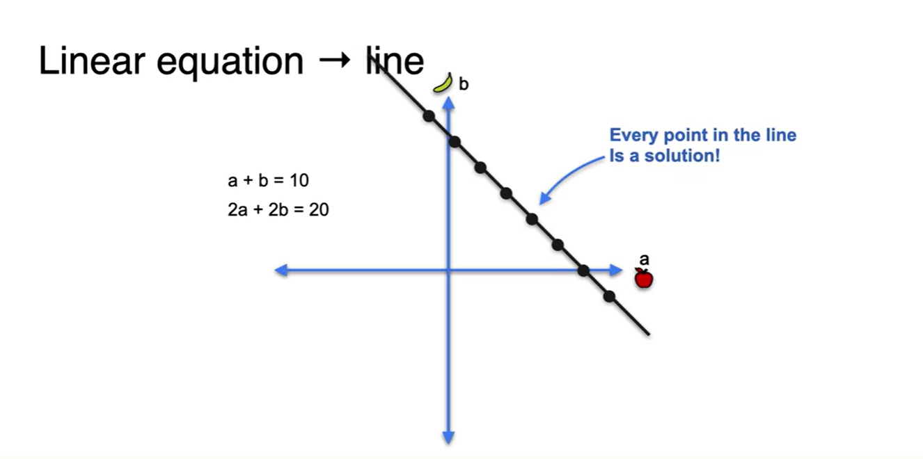 아래 방정식은 row1과 row2의 합으로 row3를 만들어 낼 수 있기 때문에 linearly dependent하다.