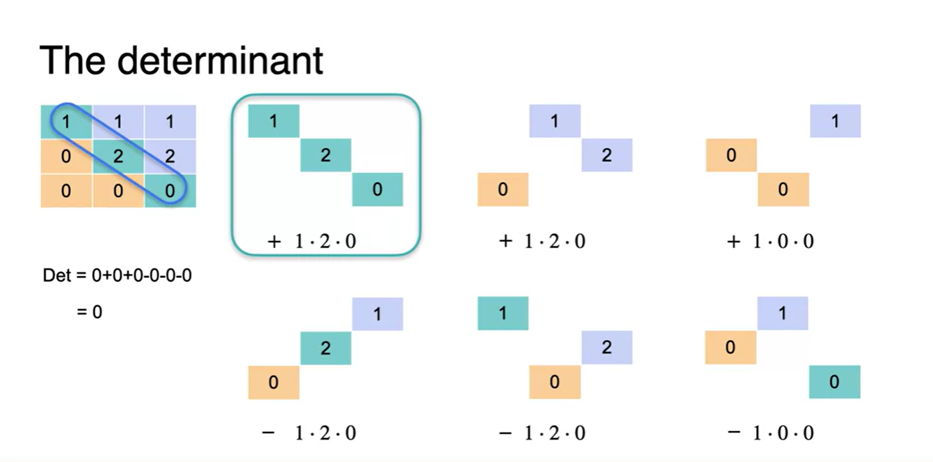 아래와 같은 상부 삼각 행렬은 determinant가 diagonal한 원소들의 곱으로 표현된다.