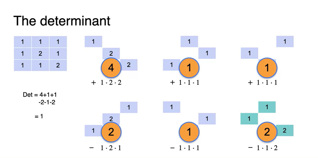 2x2 행렬에서 determinant를 계산했던 방법을 비슷하게 3x3에 적용해보자.