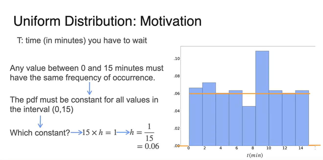 (0, 15) 사이의 값이 same frequency를 가진다면, 해당 interval 확률은 모두 동일하다.