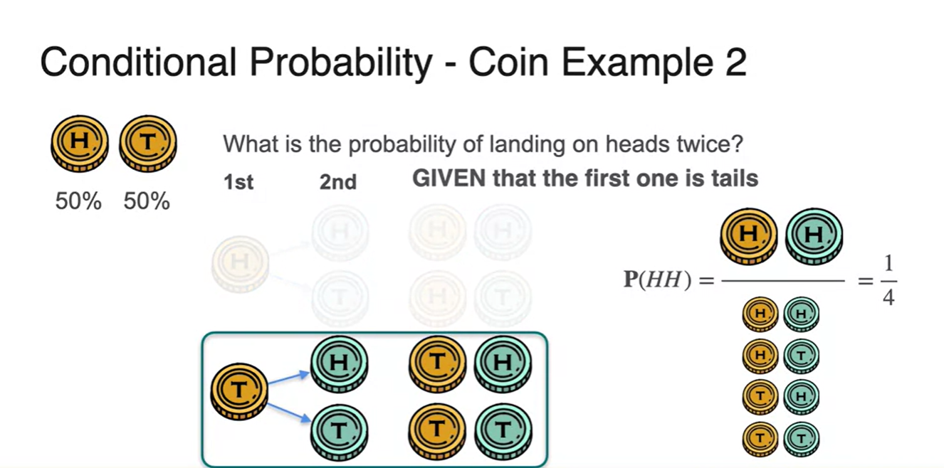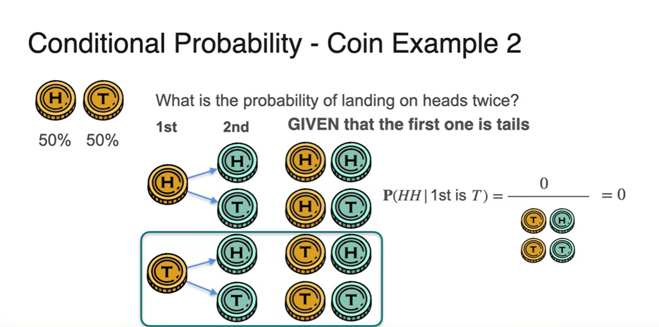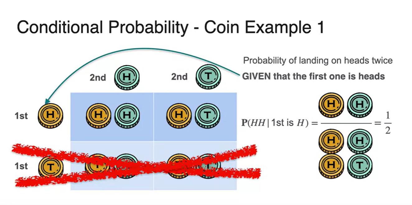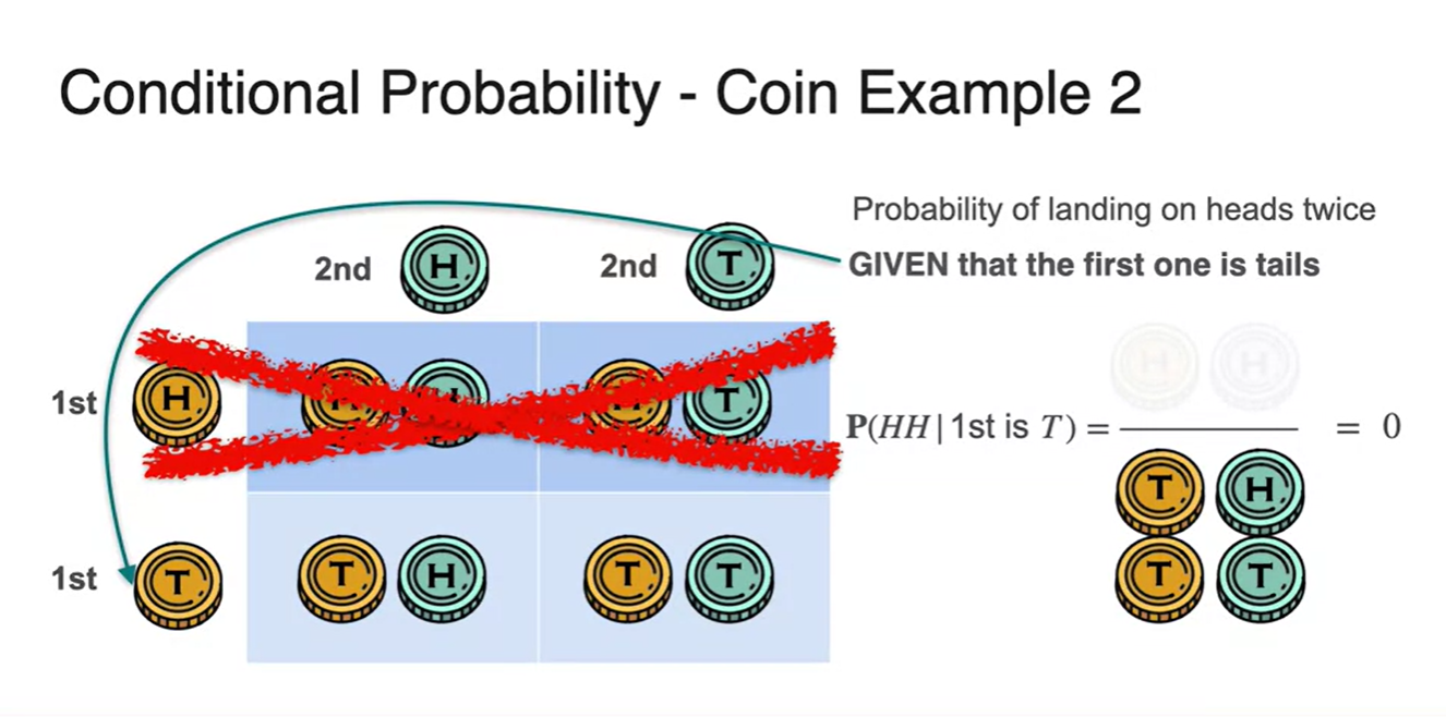 마찬가지로 첫 시행이 Tail이라는 조건이 주어진 순간, 모든 경우의 수 중 첫 시행이 Head인 경우의 수는 지워버리는 것과 같다.