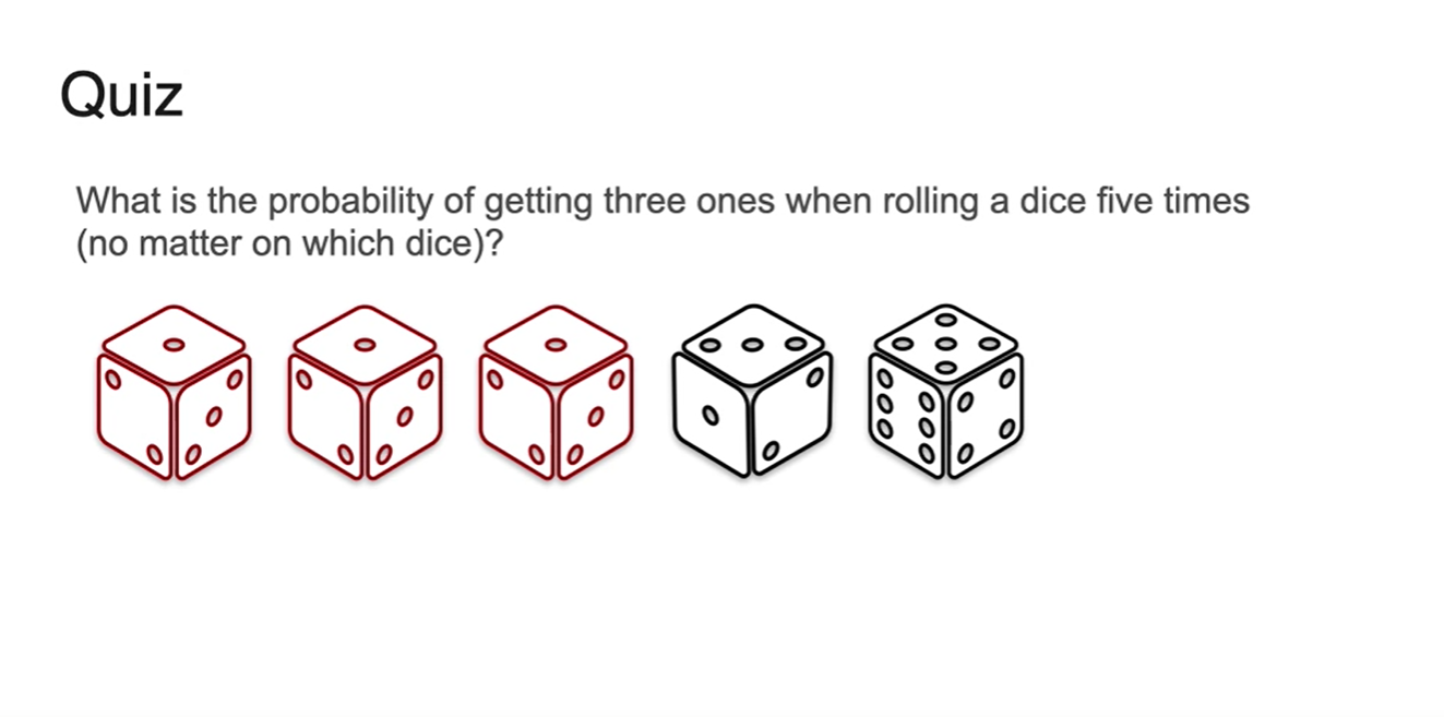 Quiz. 5번의 주사위를 던져 1이 3번 나올 확률은?
