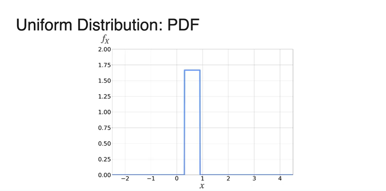이를 주황색 line으로 나타내어 Uniform distribution의 PDF를 완성한다.