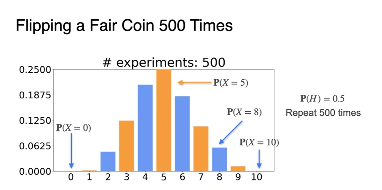 Biased coin으로 binomial distribution 히스토그램를 나타내면 아래 그림과 같이 그려진다.
