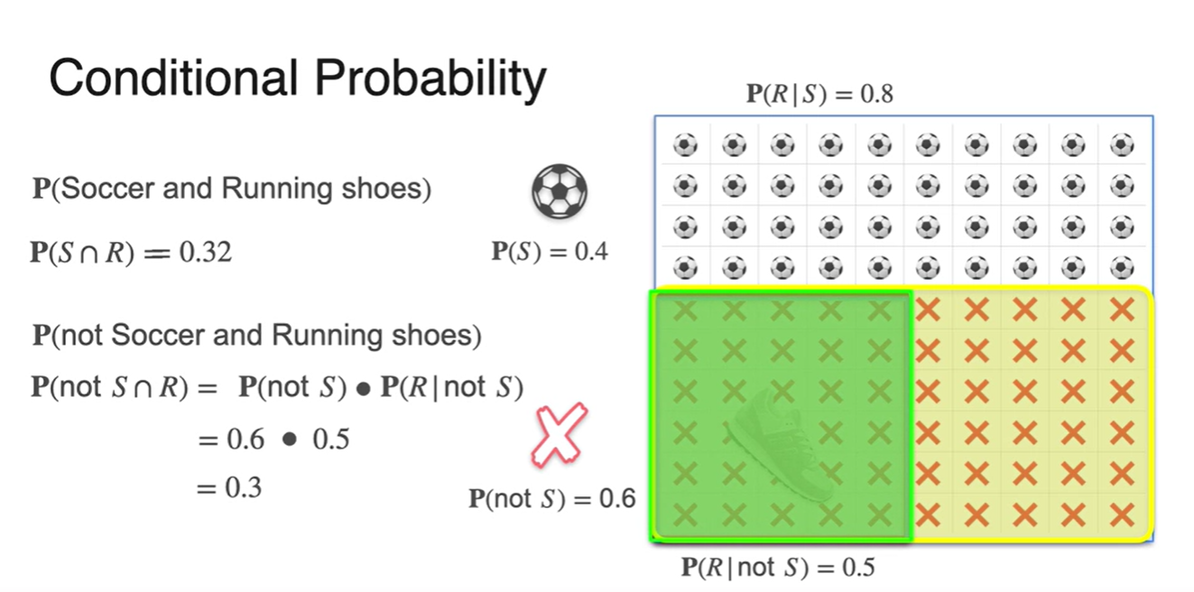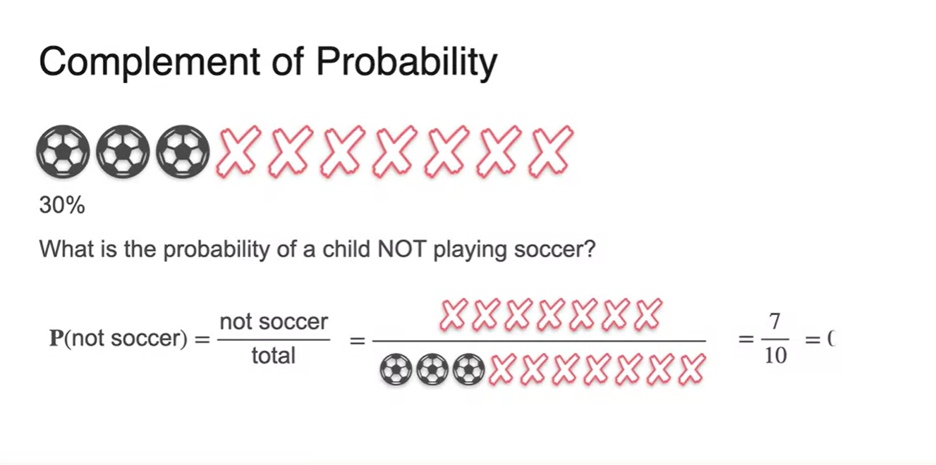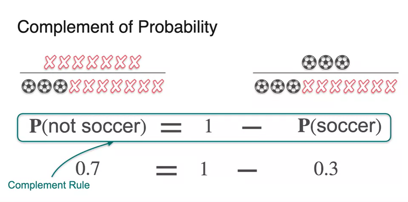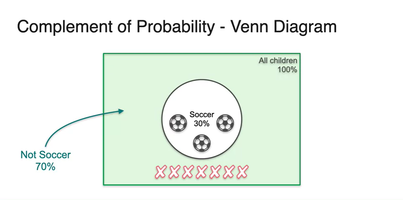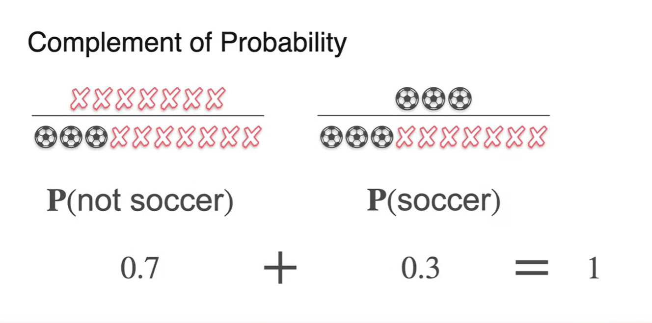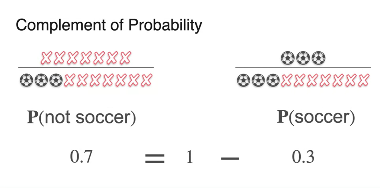 이를 벤다이어 그램으로 표현한다면 축구공을 고른 event의 여백이 바로 Not soccer zone이다.