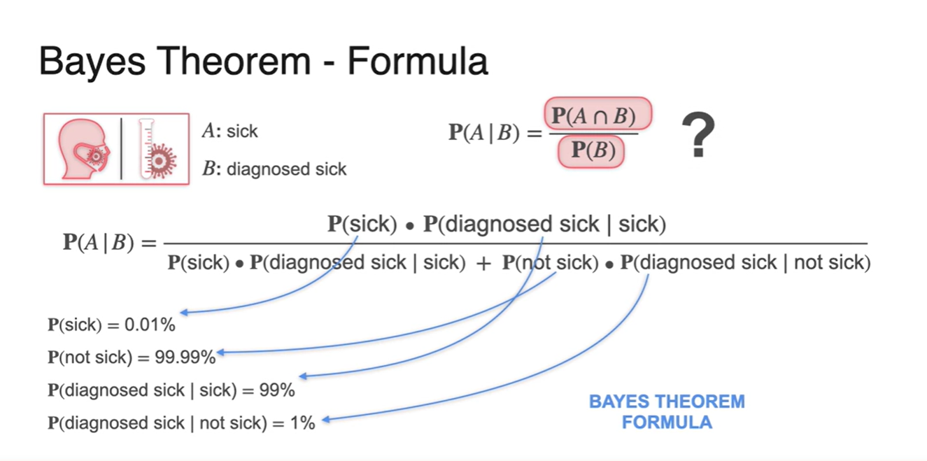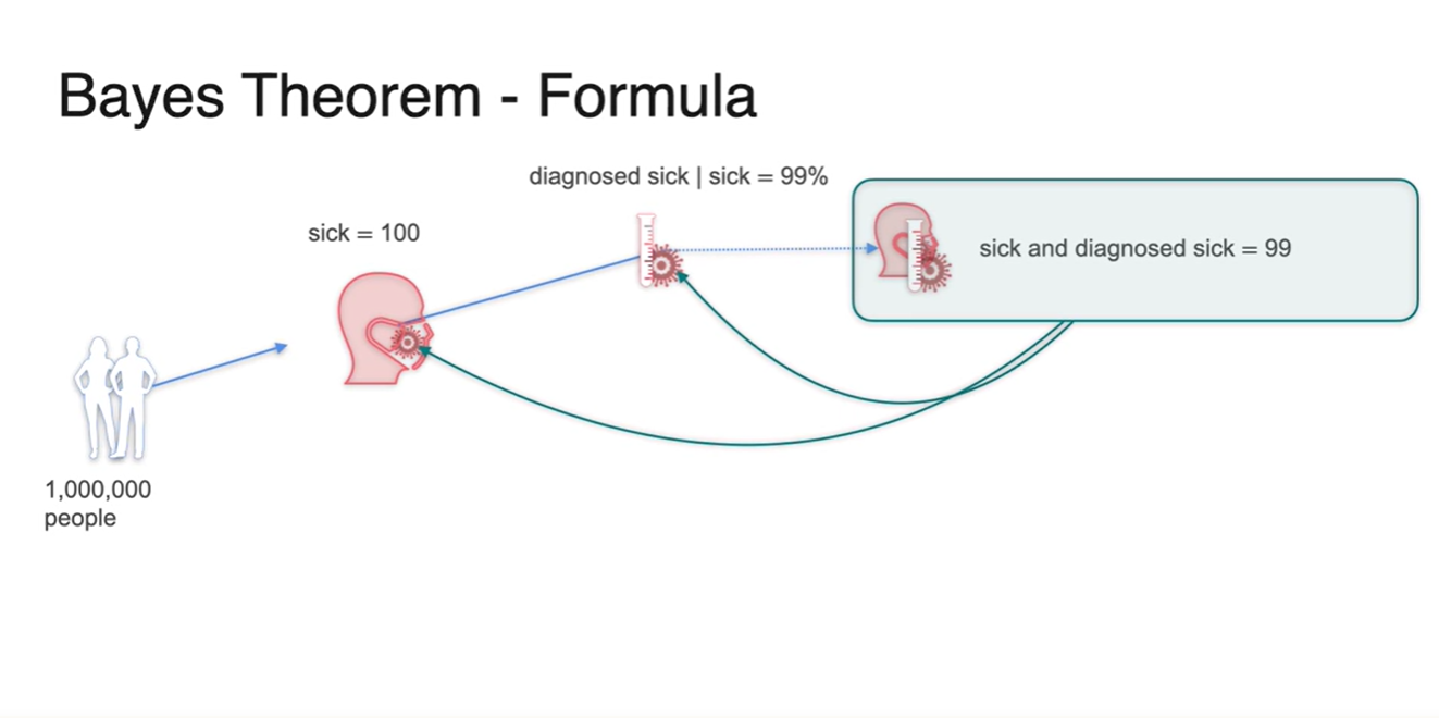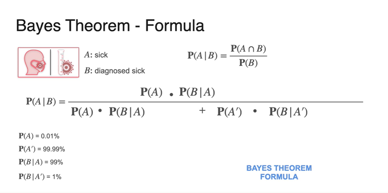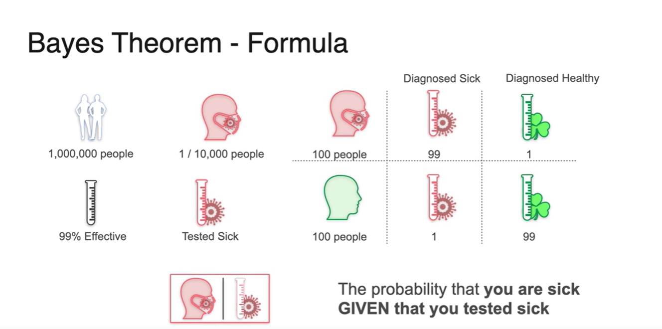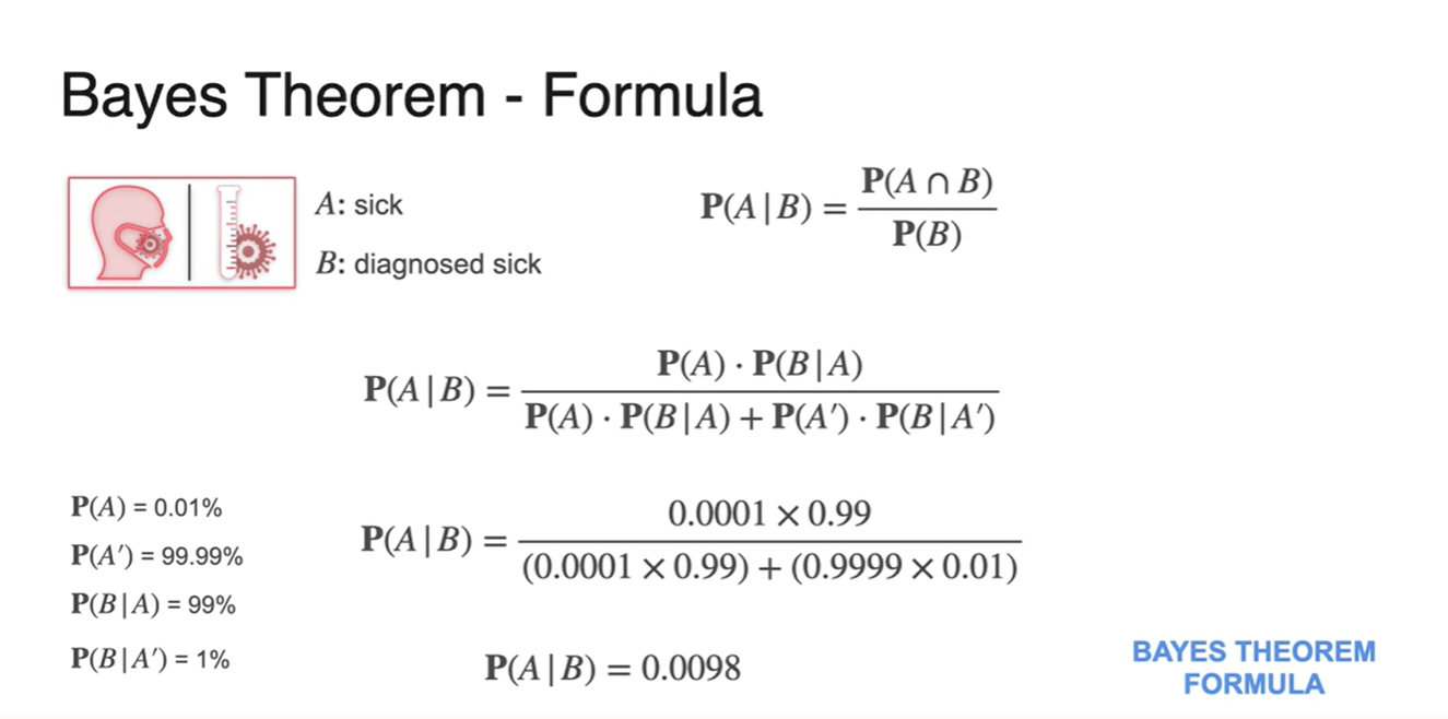 다시 한 번 정리하면 다음과 같은 식으로 Bayes Theorem 예시를 전개할 수 있다.